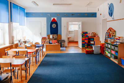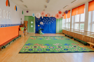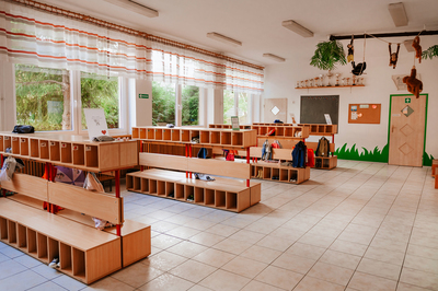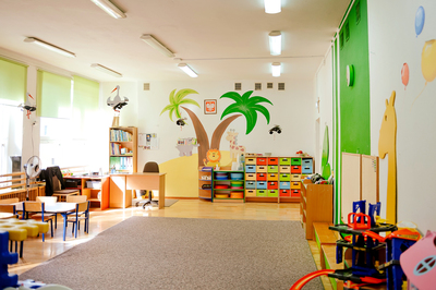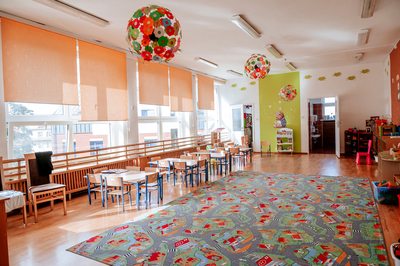Przedszkole mieści się w wolnostojącym, piętrowym budynku. Sale są wielofunkcyjne, duże, jasne, dostosowane do potrzeb i możliwości dzieci w wieku przedszkolnym, dobrze wyposażone i estetyczne. Teren wokół przedszkola odległy jest od ruchliwej ulicy, usytuowany blisko parku miejskiego. Lokalizacja ta zapewnia spokój i bezpieczeństwo.