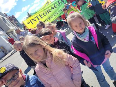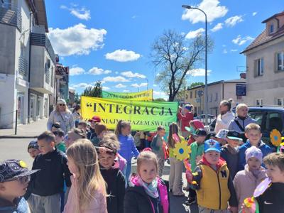 Przedszkolaki z grupy Kosmoludki wzięły udział w pochodzie na rzecz godności Osób z niepełnosprawnością intelektualną zorganizowanym przez PSONI w Kamieniu Pomorskim. Spotkanie miało na celu zwrócenie uwagi na godność każdego człowieka oraz uwrażliwienie społeczeństwa na potrzeby osób niepełnosprawnych. Mieszkańcy miasta, przedstawiciele władz oraz placówek oświatowych podkreślili w ten sposób swoją solidarność z osobami niepełnosprawnymi.