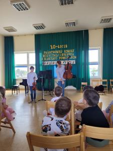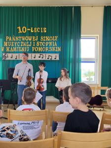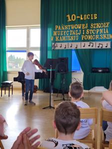 Przedszkolaki z grupy Marynarze oraz Kosmoludki udały się z wizytą do Państwowej Szkoły Muzycznej w Kamieniu Pomorskim. Dzieci wysłuchały pięknych koncertów wykonanych przez bardzo zdolnych uczniów. Przedszkolaki dowiedziały się jak wyglądają i jak brzmią niektóre z instrumentów. Na zakończenie mieliśmy możliwość gry na fortepianie. Spotkanie miało na celu przybliżenie dzieciom muzyki oraz zachęcenie ich do edukacji w tym kierunku.