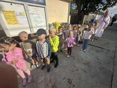 Przedszkolaki z grupy Tygryski wybrały się do siedziby straży pożarnej w Kamieniu Pomorskim. Dzieci dowiedziały się jak wygląda praca strażaka oraz czemu służy. Maluchy zobaczyły jak wygląda wóz strażacki i w jaki sprzęt jest zaopatrzony, mogły także przymierzyć hełm strażacki i dowiedzieć się o zasadach bezpieczeństwa. Każda chętna osoba miał okazję zająć miejsce na fotelu w strażackim wozie. Na zakończenie na przedszkolaki czekała największa atrakcja, polewanie wodą, które przyniosło dzieciom wiele radości. Wizyta ta miała na celu uświadomienie dzieciom znaczenia pracy strażaków oraz kształtowanie właściwych zachowań w sytuacjach zagrożenia.