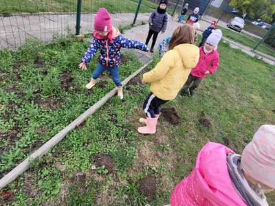 Przedszkolaki wiedzą jak ważne jest dbanie o przyrodę. Wspólnie postanowiliśmy więc zasadzić sadzonki krokusów wokół naszego przedszkola. Dzieci bardzo zaangażowały się w prace ogrodnicze. Już nie możemy doczekać się efektów naszych działań i niecierpliwie czekamy na wiosnę.
