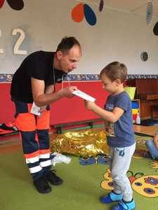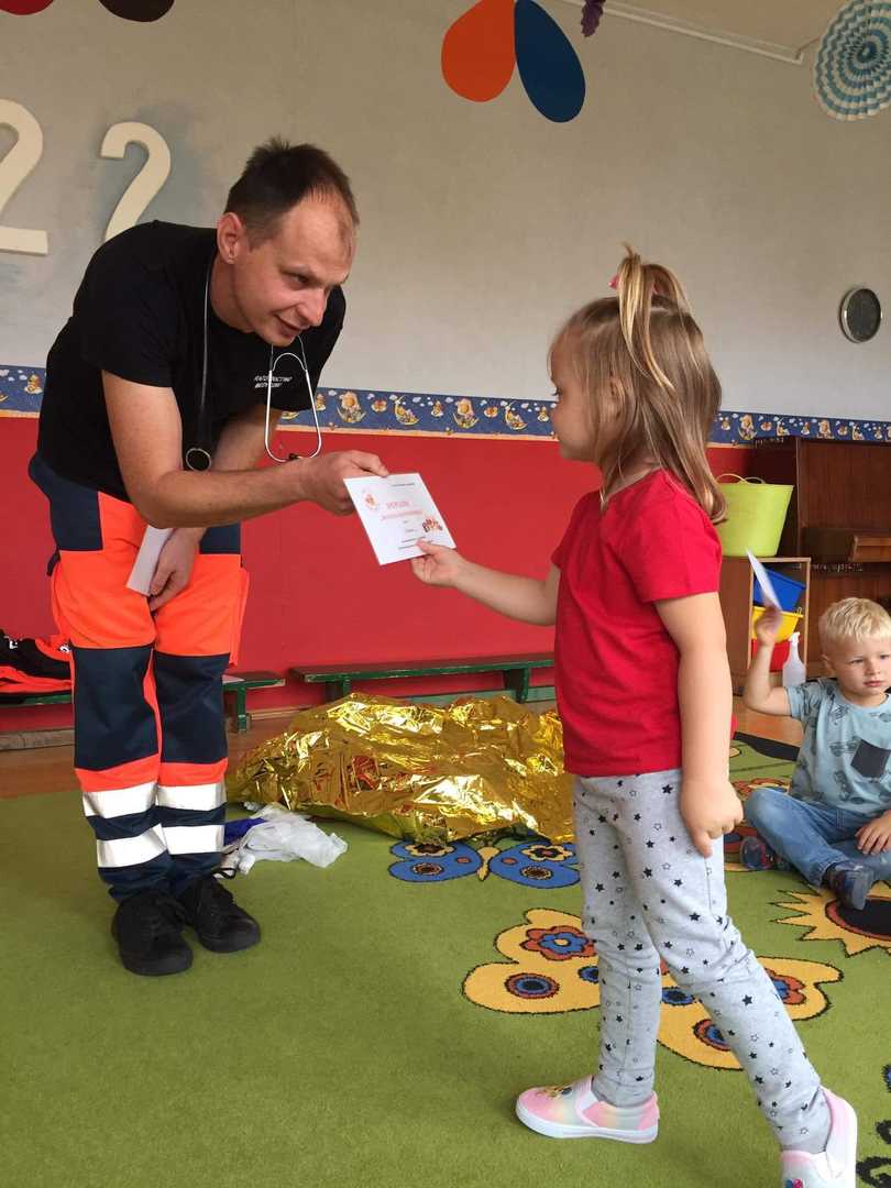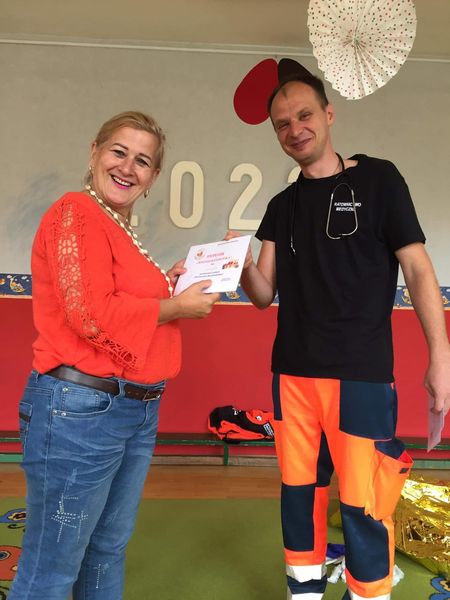Przedszkolaki miały okazję gościć w przedszkolu Pana Ratownika Medycznego. Na spotkaniu dowiedziały się jak należy udzielić pierwszej pomocy poszkodowanemu, a także same mogły spróbować przeprowadzić resustytację krążeniowo-oddechową na fantomie. Przypomniały sobie numer alarmowy i nauczyły jak wezwać pomoc gdy ktoś zasłabnie lub ulegnie wypadkowi.