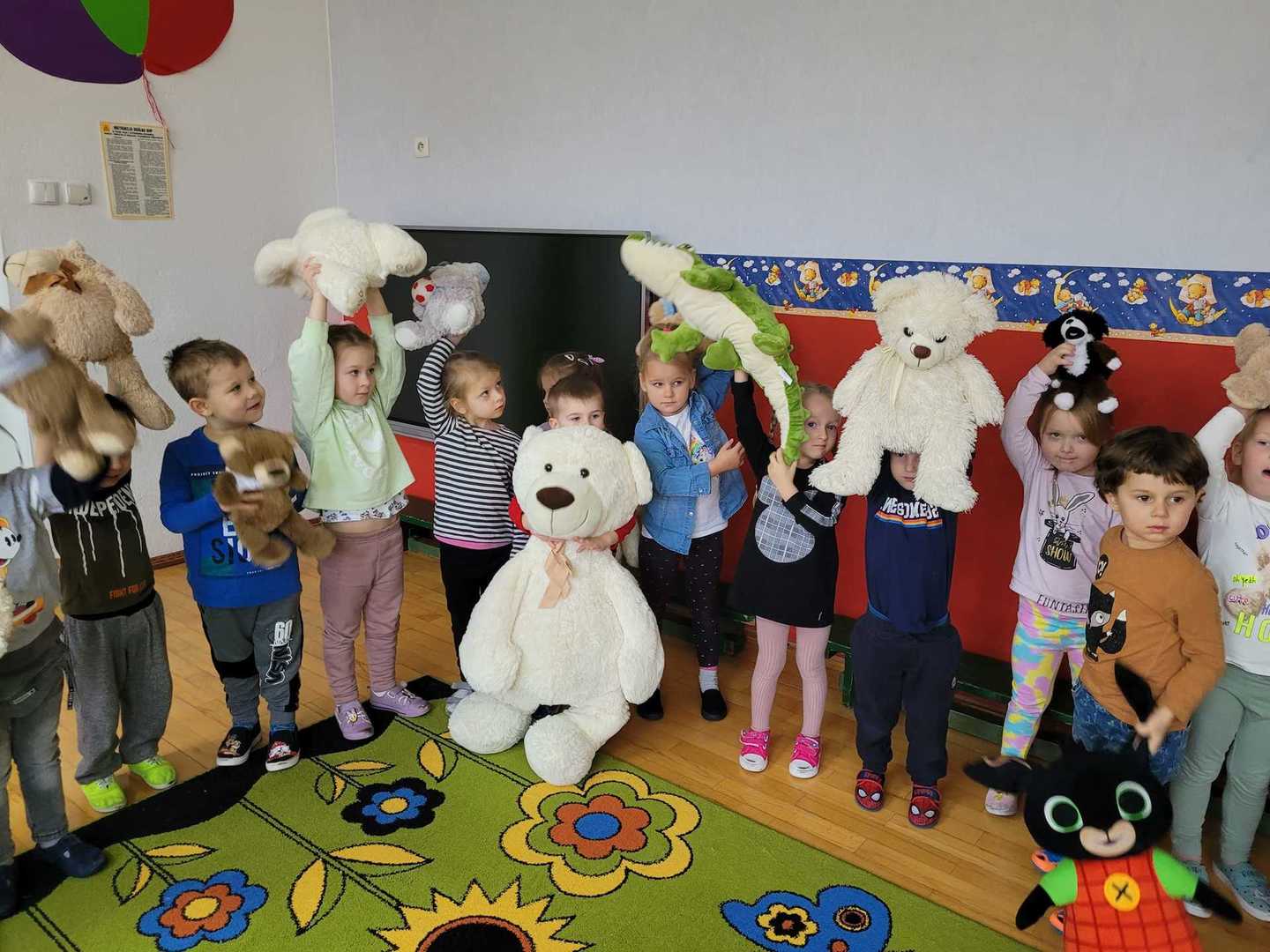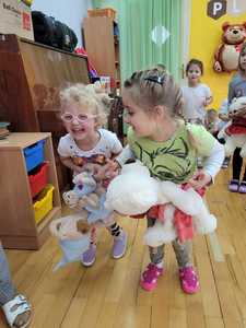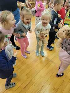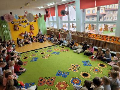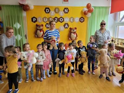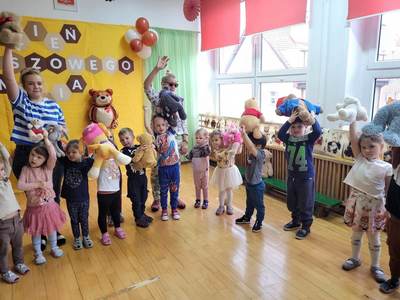 Dziś w naszym przedszkolu obchodziliśmy Dzień Pluszowego Misia. Historia narodzin pluszowego misia ma już blisko 120 lat. Dzieci co roku tego dnia przynoszą do przedszkola swoje ukochane maskotki i wraz z nimi świętują niezwykłe urodziny. Również dziś nie zabrakło zabaw ruchowych, tańców oraz śpiewów, w których prym wiodły pluszowe misie, każdy z nich mógł poczuć się w naszym gronie jak na najlepszej zabawie urodzinowej.