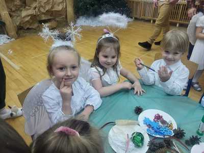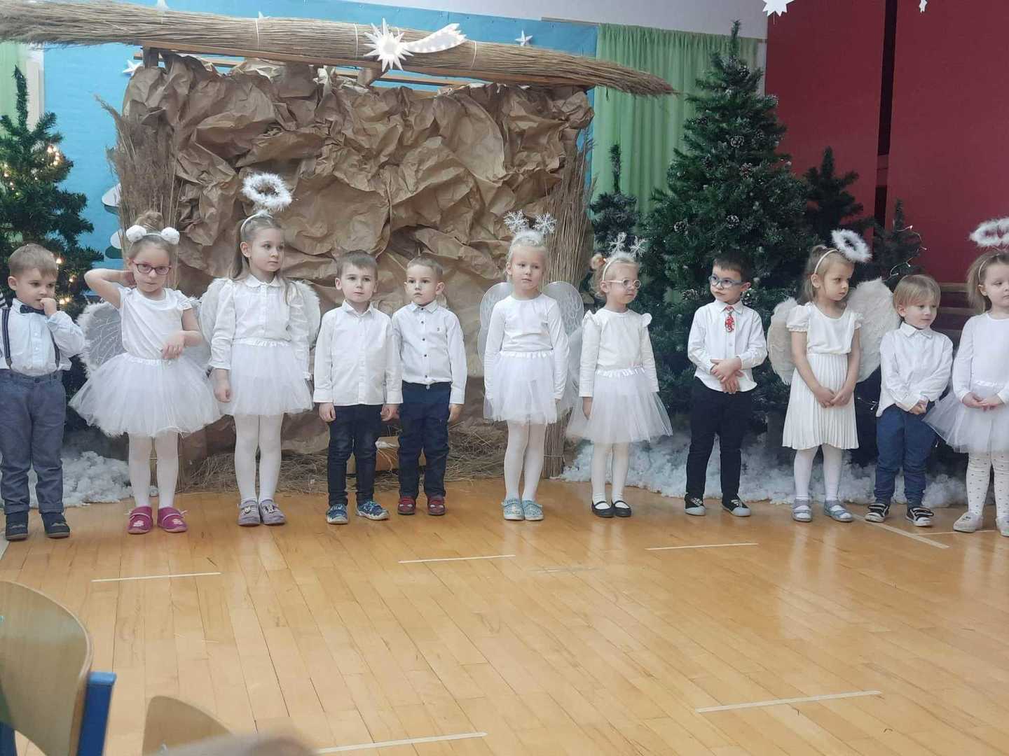 16 grudnia dzieci i rodzice z grupy Tygryski spotkali się, aby wspólnie spędzić czas w świątecznej atmosferze. Dzieci zaprezentowały wiersze oraz znane kolędy. Na koniec dziewczynki zatańczyły " Taniec Aniołków". Po występie przyszedł czas na świąteczne warsztaty oraz rodzinne kolędowanie. To był bardzo wzruszający czas, który na długo pozostanie w naszych sercach.