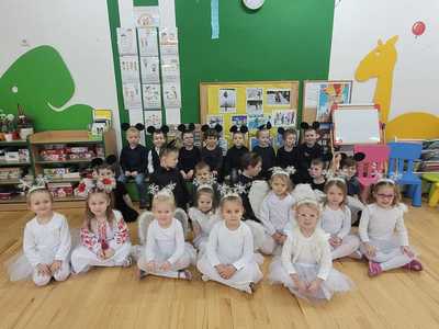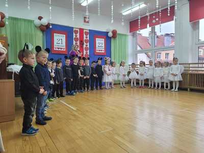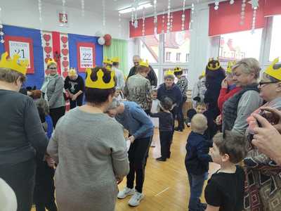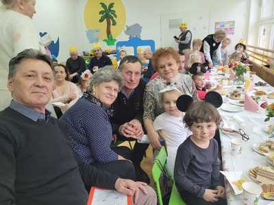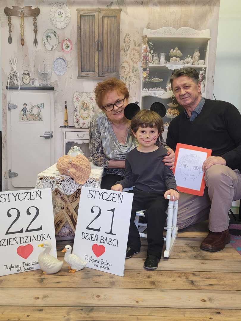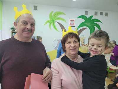 Dziś w naszym przedszkolu pojawili się niezwykli goście, babcie oraz dziadkowie, dla których dzieci z grupy Tygryski przygotowały występ. Były wierszyki za pomocą, których przedszkolaki przekazały życzenia. Przy pomocy piosenek najmłodsi opisali swą miłość do babci i dziadka. Chłopcy zaprezentowali taniec myszek, a dziewczynki taniec aniołków. Po części artystycznej zaprosiliśmy naszych gości do wspólnej zabawy, tańczyliśmy przy znanych przedszkolnych przebojach, a dziadkowie mieli okazję zaprezentować swój talent i pochwalić się świetną kondycją. Po występach przeszliśmy do sali na wspólny poczęstunek. Dzieci wręczyły babciom oraz dziadkom samodzielnie przygotowane upominki i złożyły życzenia. Na zakończenie odbyła się wspólna sesja zdjęciowa. Zarówno dzieci jak i dziadkowie bardzo cieszyli się ze wspólnego spotkania.