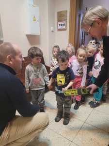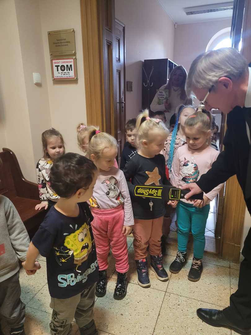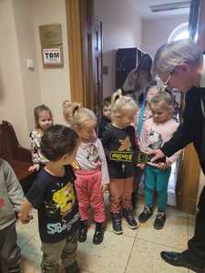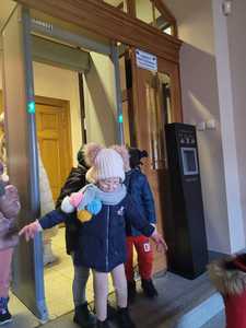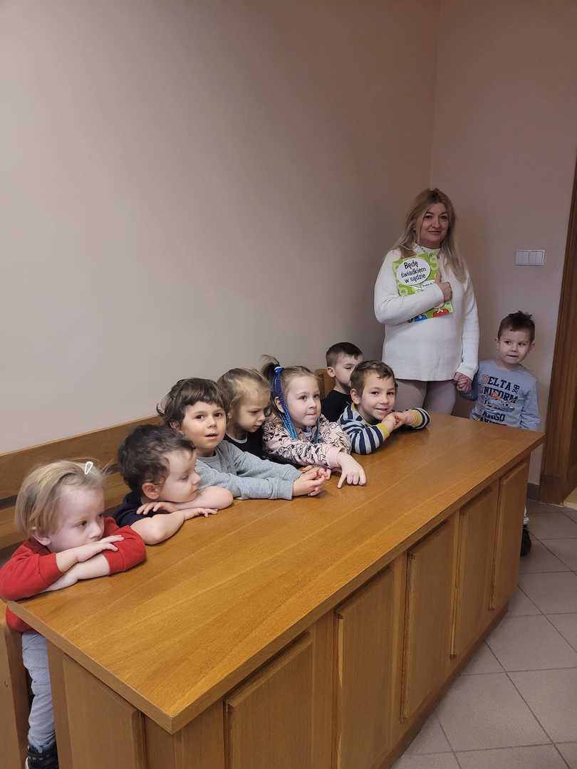 Dziś dzieci z grupy Tygryski wybrały się na wycieczkę do Sądu Rejonowego w Kamieniu Pomorskim, która miała na celu zapoznanie dzieci z zawodem sędziego oraz kuratora sądowego. Najmłodsi dowiedzieli się do czego potrzebny jest sąd i jakie sprawy można w nim załatwić. Zwiedzili także jego wnętrze: pokój kuratorów, biuro podawcze, salę rozpraw, celę w areszcie oraz tzw.niebieski pokój, w którym przeprowadzane są rozmowy z dziećmi będącymi w trudnych sytuacjach. Przedszkolaki dowiedziały się kiedy mogą szukać pomocy w instytucji jaką jest sąd. Pan ochroniarz opowiedział nam o używanych środkach bezpieczeństwa ,które są obowiązkowe. Dla dzieci była to niecodzienna wycieczka, która pozwoliła na praktyczne zapoznanie się z nowym zawodem. Bardzo dziękujemy pracownikom Sądu Rejonowego w Kamieniu Pomorskim za oprowadzenie nas i poświęcony czas.