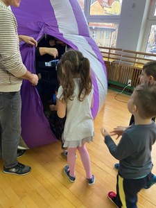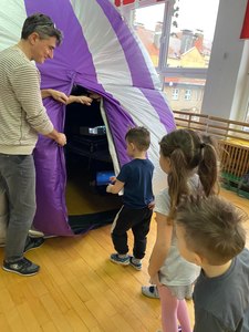 Dziś w naszym przedszkolu odbyła się projekcja edukacyjna w technologii 360 stopni. Podczas seansu w mobilnej kopule udaliśmy się w niezwykłą podróż. Przybliżyła nam ona wiadomości na temat naszej planety i kosmosu. Dzięki tej nowoczesnej i multimedialnej pomocy dydaktycznej dzieci mogły uzupełnić swoją wiedzę i zaspokoić ciekawość w przystępny dla siebie sposób.