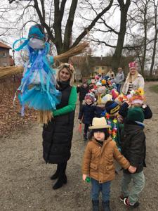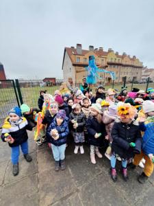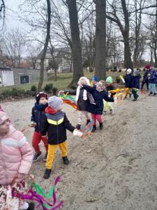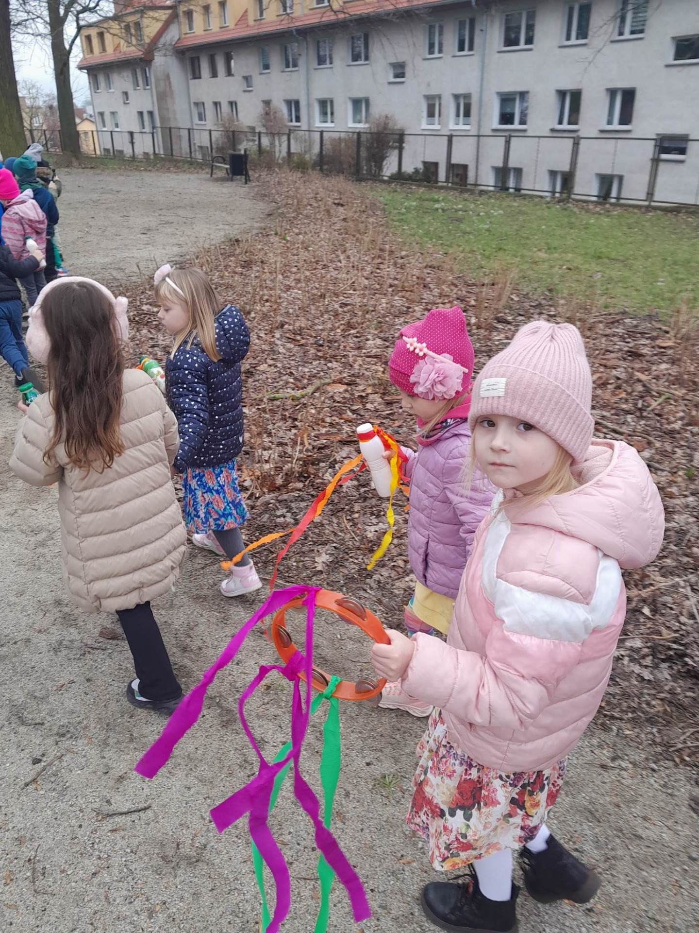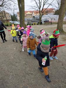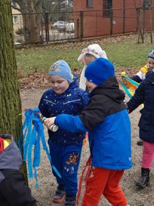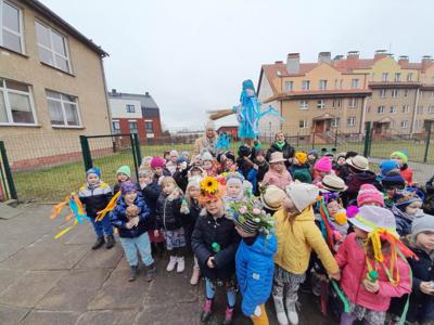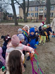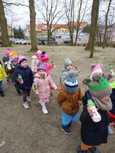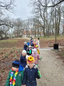 Dwudziestego marca przedszkolaki z uśmiechem na ustach wybrały się na spacer po parku podczas, którego żegnały zimę, a witały nadchodzącą wiosnę. Na początku kolorowego pochodu dumnie prezentowała się kukła przygotowana przez dzieci - Marzanna. Wszyscy wesoło śpiewali i grali na instrumentach. Mamy nadzieję, że na dobre przegoniliśmy zimową pogodę i od dziś towarzyszyć nam będzie już tylko słońce.