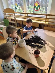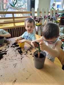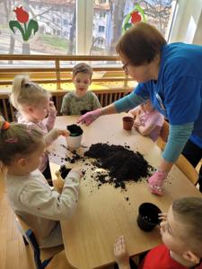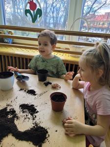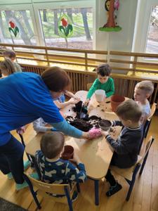 27 marca odwiedziły nas Panie z Uniwersytetu Trzeciego Wieku w Kamieniu Pomorskim i pomogły nam założyć hodowlę kwiatów oraz rzeżuchy. Dzieci posadziły w swoich doniczkach różnorodne kwiaty, a na koniec zasiały rzeżuchę oraz szczypiorek. Przedszkolaki dowiedziały się czego potrzebują rośliny ,aby mogły wzrastać i rozwijać się. Od dziś będziemy bacznie obserwować naszą hodowlę i sprawdzać jak się rozwija.