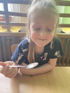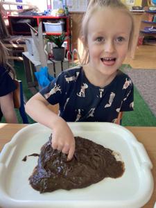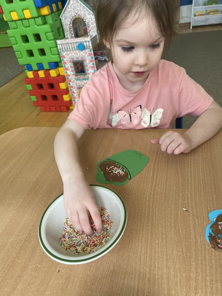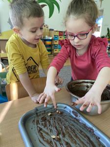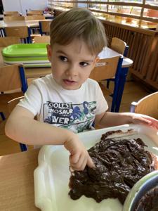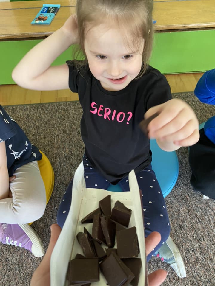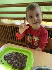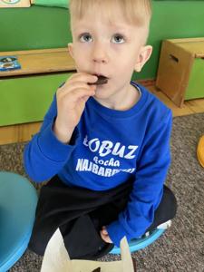 Czekolada jest nie tylko pyszna ale i zdrowa. Zmniejsza zmęczenie, poprawia nastrój, dodaje energii, łagodzi stres i wspomaga pracę mózgu. Dziś przedszkolaki z okazji Międzynarodowego Dnia Czekolady dowiedziały się jakie są jej właściwości i skąd się bierze, w czym pomaga, a na co szkodzi. Najmłodsi przeprowadzili degustację i mogli spróbować różnych rodzajów czekolady. Dużo radości sprawiła wszystkim zabawa sensoryczna z wykorzystaniem budyniu czekoladowego, a dzieciom trudno było się powstrzymać przed podjadaniem. Na koniec przedszkolaki wykonały prace plastyczne- czekoladowe babeczki z posypką i porządnie umyły zęby. To był naprawdę pyszny dzień, jeden z ulubionych dni w przedszkolu.