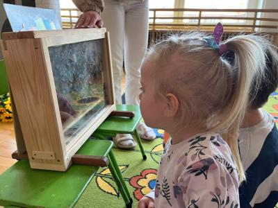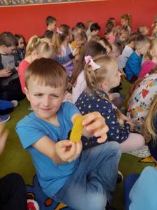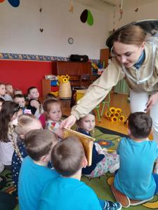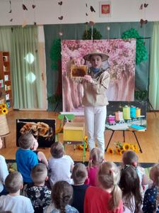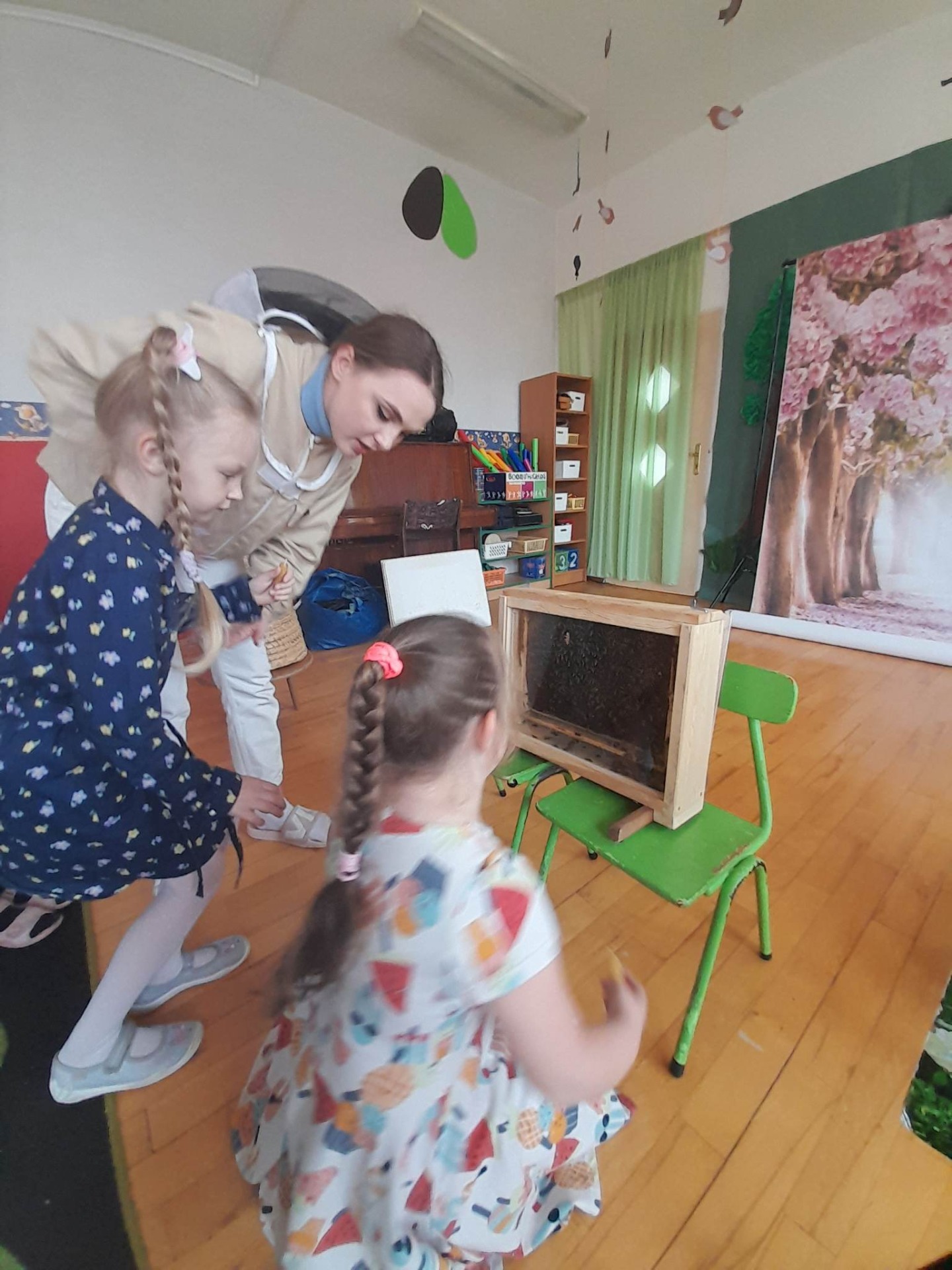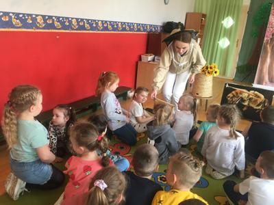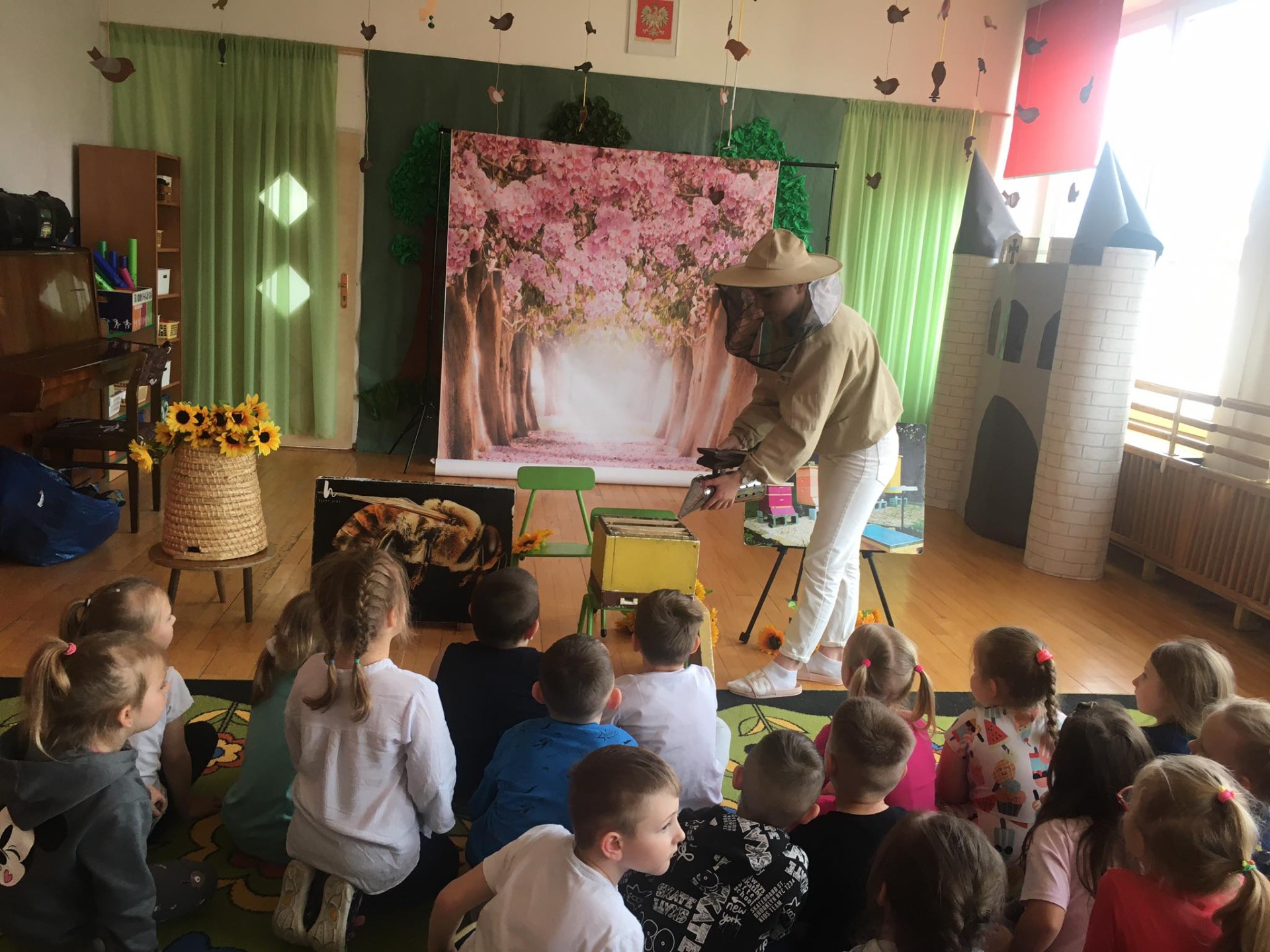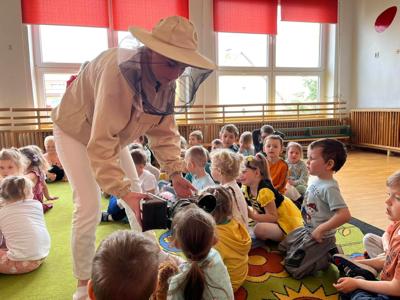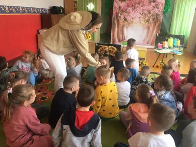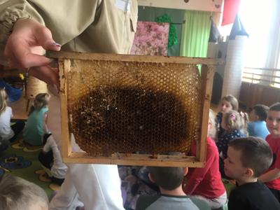 21 kwietnia mieliśmy możliwość uczestnictwa w warsztatach pszczelarskich. Przedszkolaki dowiedziały się dlaczego pszczoły są nam potrzebne oraz jak zachować się w sytuacji zagrożenia z ich strony. Dzieci zobaczyły jak wyglądają mieszkańcy ula i jaką rolę w nim pełnią. Przedstawiony został również proces pobierania miodu z ula w bezpieczny sposób. Na zakończenie warsztatów każdy wykonał swoją świeczkę z wosku pszczelego.