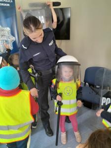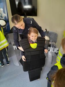 Przedszkolaki z grupy Marynarze udały się na wycieczkę do Komendy Powiatowej Policji w Kamieniu Pomorskim. Dzieci zapoznały się z zawodem policjanta. Zwiedziły pomieszczenia znajdujące się na Komendzie. Mogły przymierzyć policyjne czapki oraz kamizelki kuloodporne. Przedszkolaki dowiedziały się czym zajmuje się policjant. Utrwaliły sobie znajomość numeru alarmowego oraz zasad wzywania pomocy w sytuacji im zagrażającej. Na zakończenie wycieczki chętne dzieci mogły wejść do policyjnego wozu. Dla przedszkolaków był to dzień z dużą dawką pozytywnych emocji.