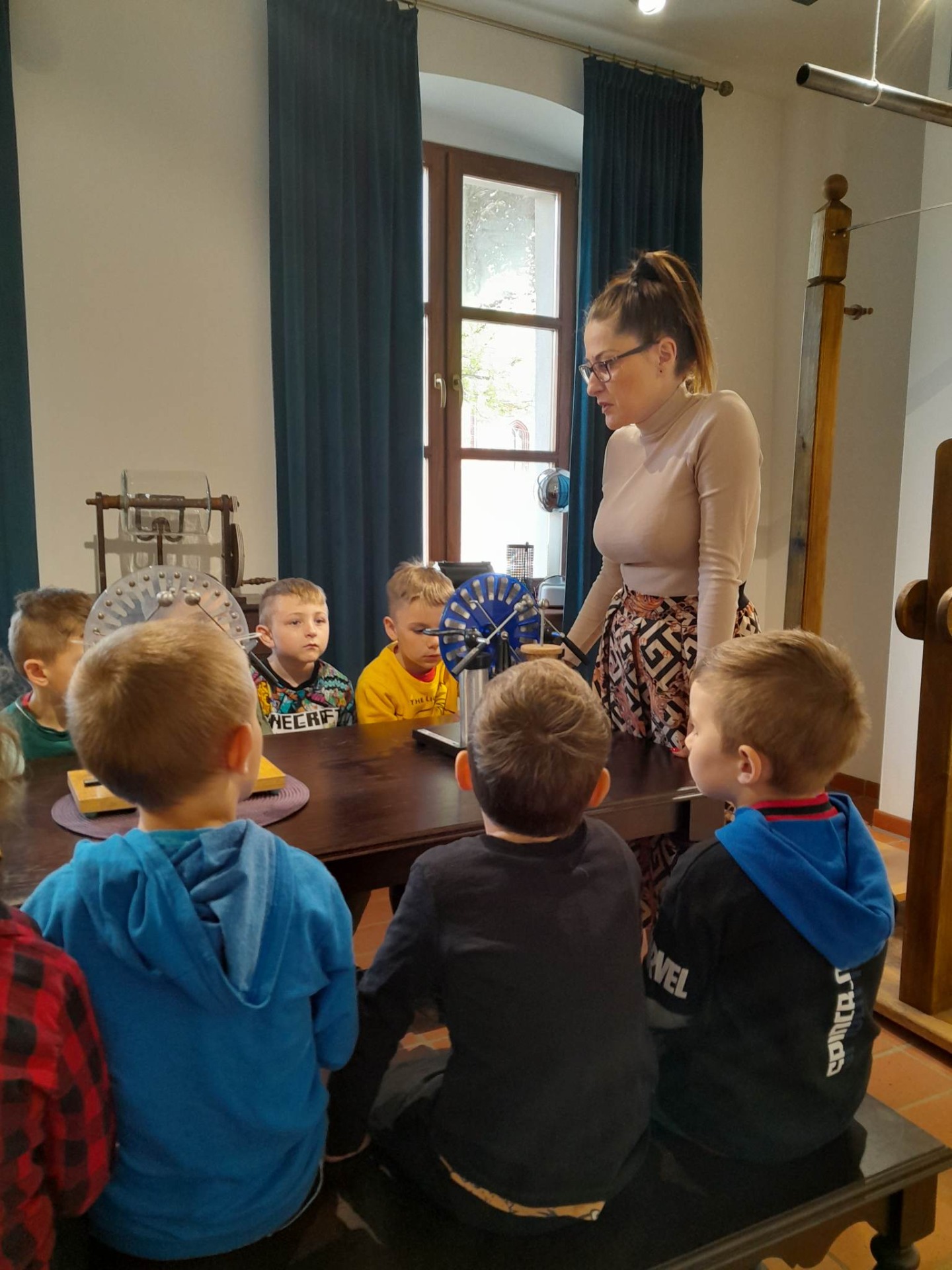 Przedszkolaki wybrały się na wycieczkę do muzeum, aby zapoznać się z wystawą poświęconą Edwaldowi Georgowi von Kleistowi - wynalazcy kondensatora, który zajmował się badaniami elektryczności.