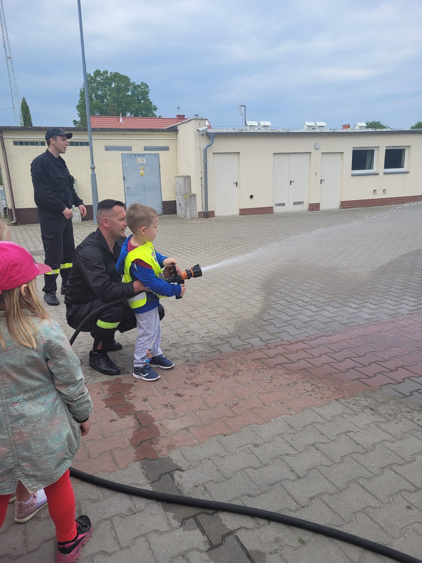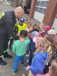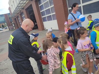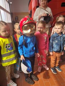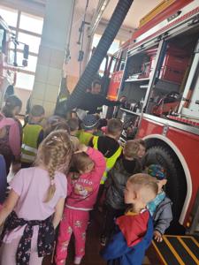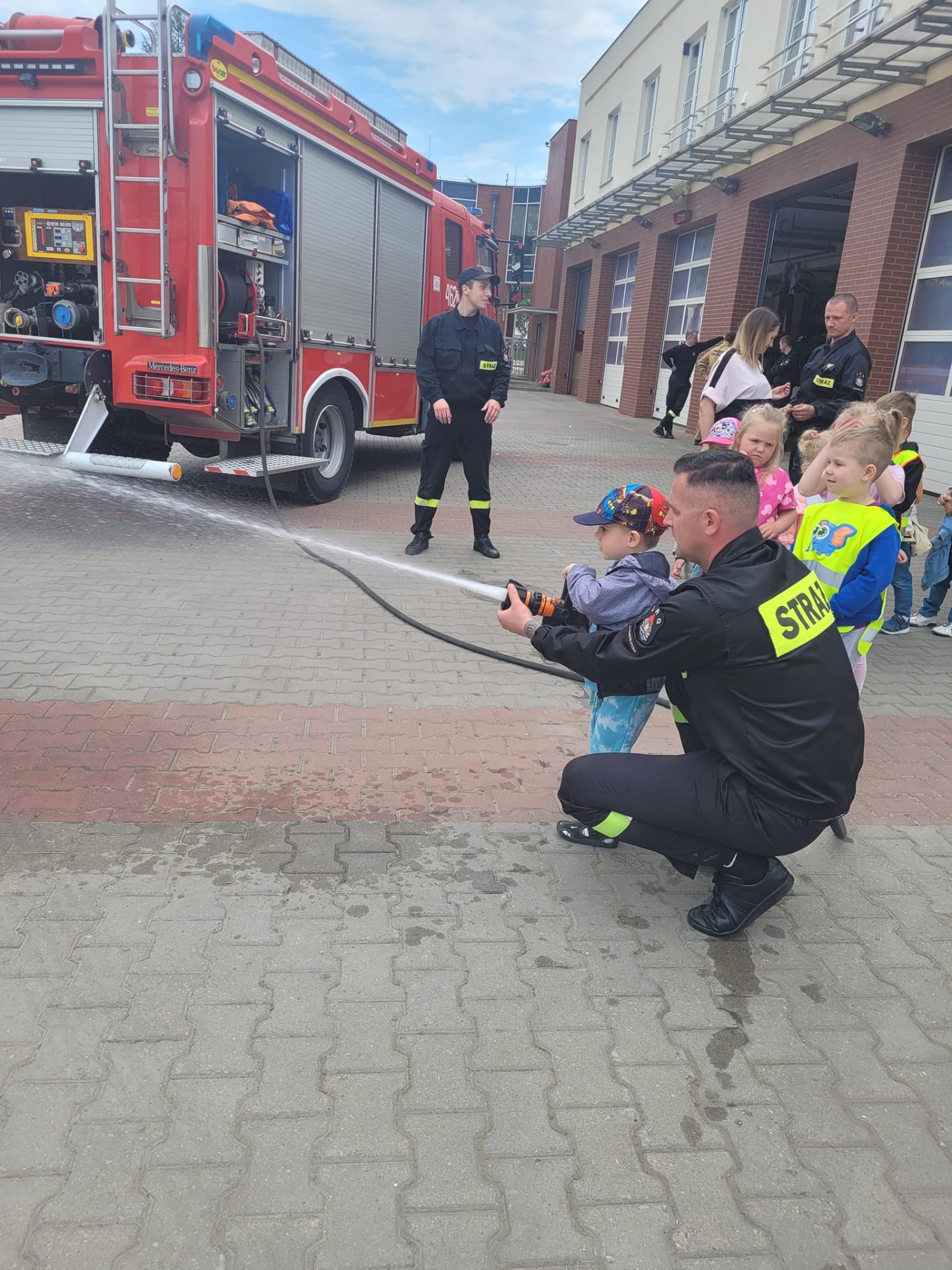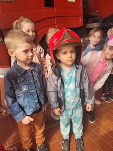 Przedszkolaki z grupy Tygryski i Marynarze wybrały się na wycieczkę do Straży Pożarnej. Dzieci w trakcie spotkania poznały wyposażenie wozów strażackich, sprzęt oraz ubiór jaki używany jest przez strażaków podczas akcji ratunkowych. Następnie przedszkolaki zwiedziły stanowiska kierowania, w których przyjmowane są zgłoszenia odnośnie sytuacji niebezpiecznych i zobaczyły jak po usłyszeniu alarmu strażacy szykują się do wyjazdu na akcję. Ponadto dzieci przypomniały i utrwaliły sobie wiedzę na temat zasad bezpieczeństwa i dowiedziały jak należy zachować się w sytuacjach zagrożenia. Na zakończenie spotkania każde chętne dziecko mogło poczuć się jak prawdziwy strażak i lać wodę ze strażackiego węża. Przy pożegnaniu każdy przedszkolak poczęstował się pysznym cukierkiem prosto ze strażackiego hełmu. Składamy serdeczne podziękowania Panom Strażakom za miłe przyjęcie i poświęcony czas.