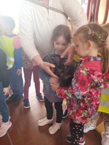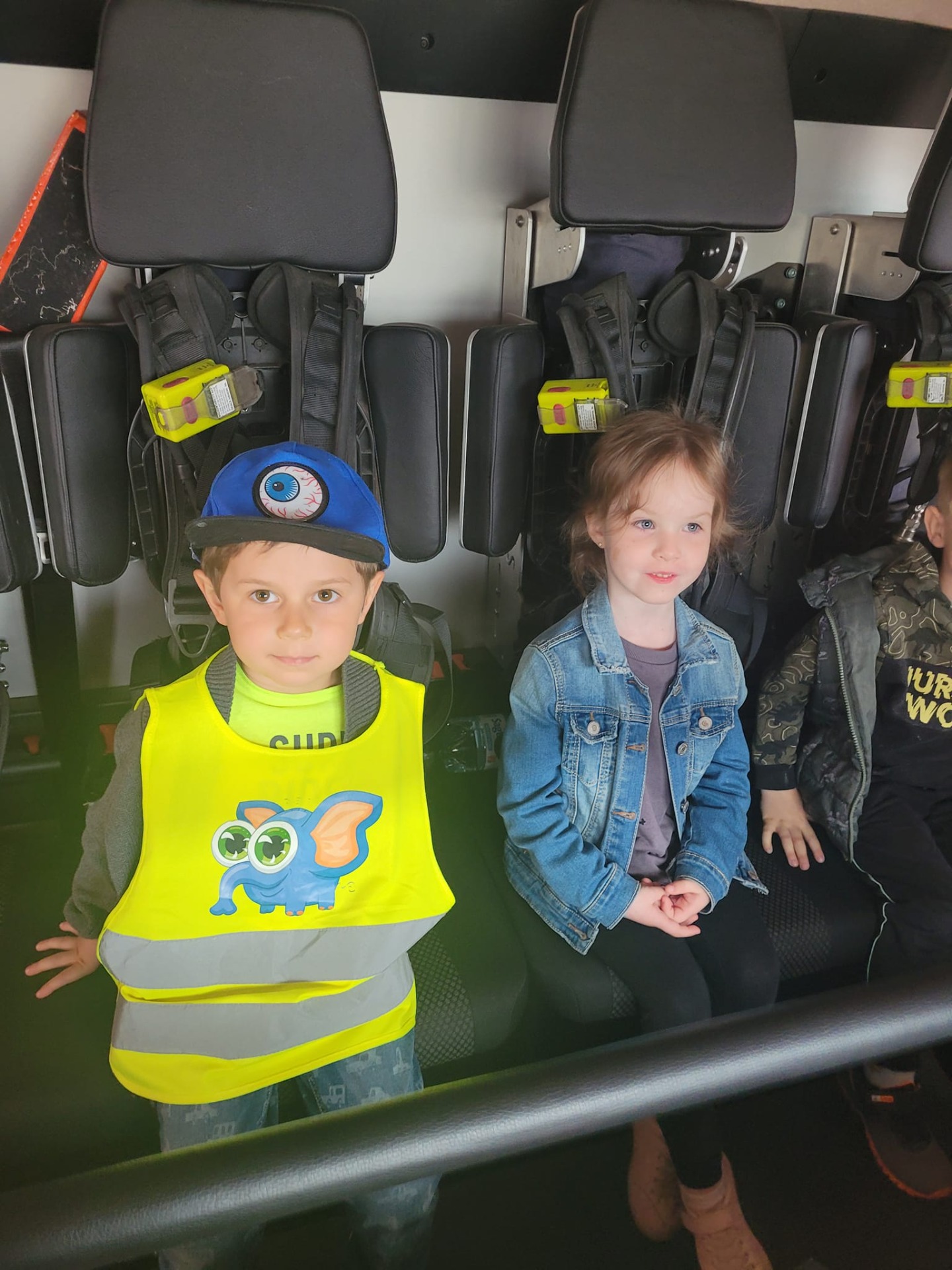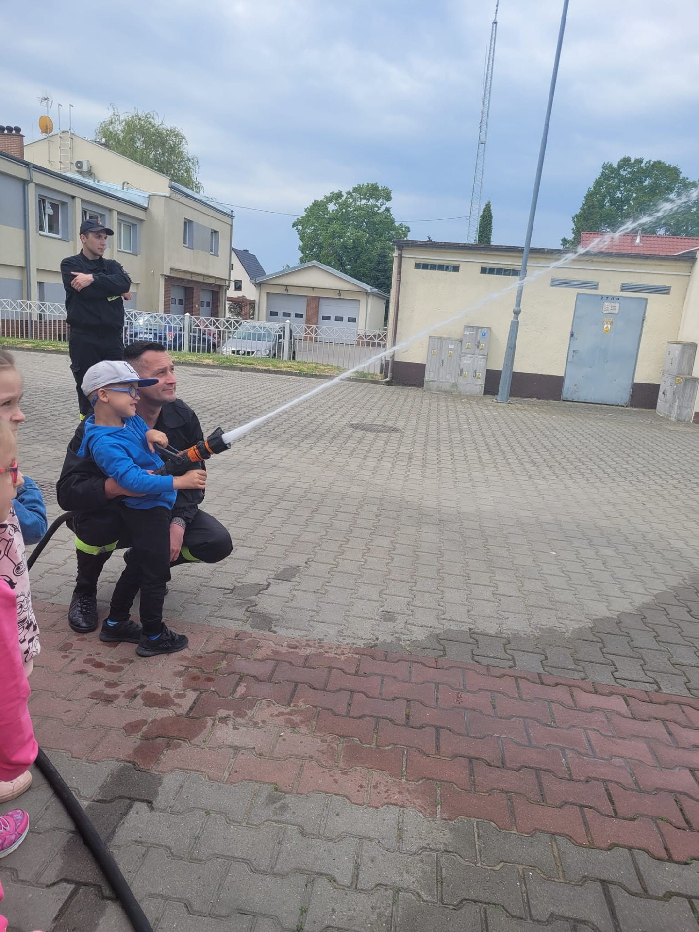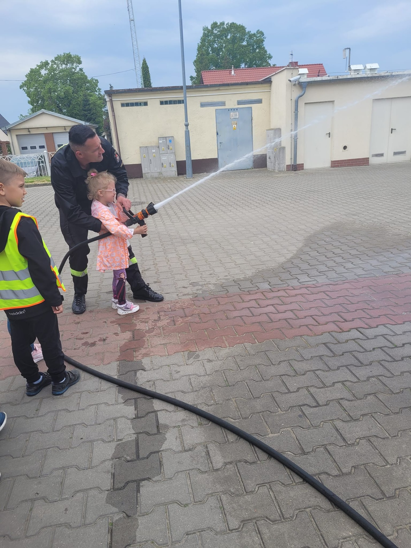 Przedszkolaki z grupy Tygryski i Marynarze wybrały się na wycieczkę do Straży Pożarnej. Dzieci w trakcie spotkania poznały wyposażenie wozów strażackich, sprzęt oraz ubiór jaki używany jest przez strażaków podczas akcji ratunkowych. Następnie przedszkolaki zwiedziły stanowiska kierowania, w których przyjmowane są zgłoszenia odnośnie sytuacji niebezpiecznych i zobaczyły jak po usłyszeniu alarmu strażacy szykują się do wyjazdu na akcję. Ponadto dzieci przypomniały i utrwaliły sobie wiedzę na temat zasad bezpieczeństwa i dowiedziały jak należy zachować się w sytuacjach zagrożenia. Na zakończenie spotkania każde chętne dziecko mogło poczuć się jak prawdziwy strażak i lać wodę ze strażackiego węża. Przy pożegnaniu każdy przedszkolak poczęstował się pysznym cukierkiem prosto ze strażackiego hełmu. Składamy serdeczne podziękowania Panom Strażakom za miłe przyjęcie i poświęcony czas.