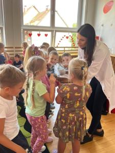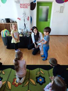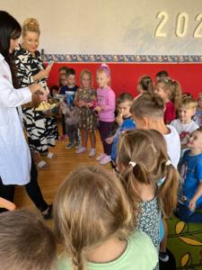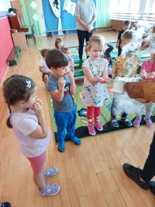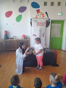 "Każdy przedszkolak dobrze wie ,że kiedy wrzesień kończy się, od najmłodszego aż po starszaka, wszyscy świętują Dzień Przedszkolaka". W tym roku z okazji święta Przedszkolaków zaprosiliśmy do naszej placówki warsztaty Miasto Nauki. Dzieci miały okazję do eksperymentowania i zamienienia się w małego naukowca. Przedszkolaki były zachwycone doświadczeniami, które obejrzały. Po zakończeniu warsztatów w salach na maluchów czekał słodki poczęstunek i małe upominki. Dzień zakończyliśmy sesją zdjęciową w bajkowej fotobudce. Dzieci wracały do domów z uśmiechem na twarzy, ten dzień z pewnością pozostanie im długo w pamięci.