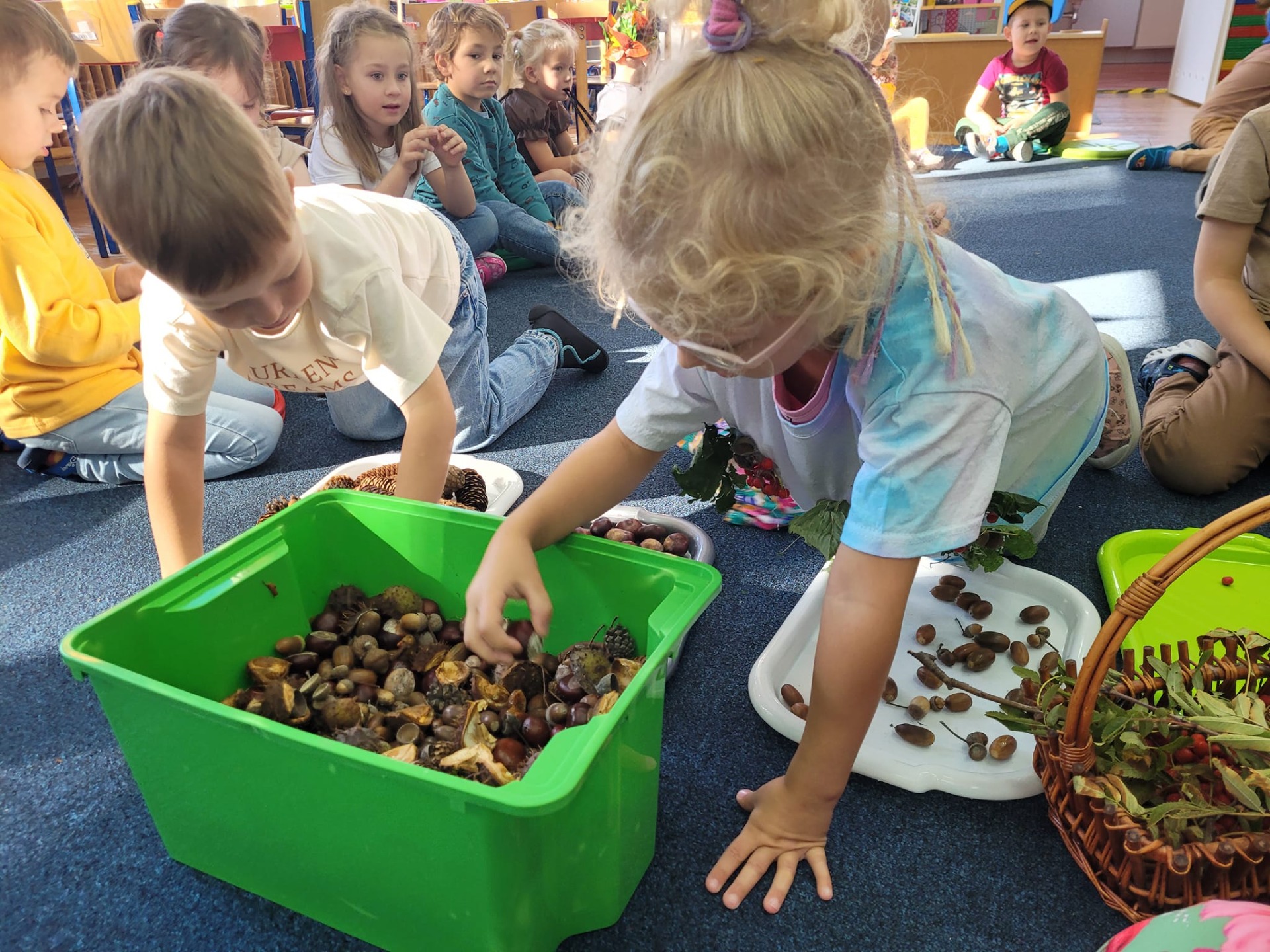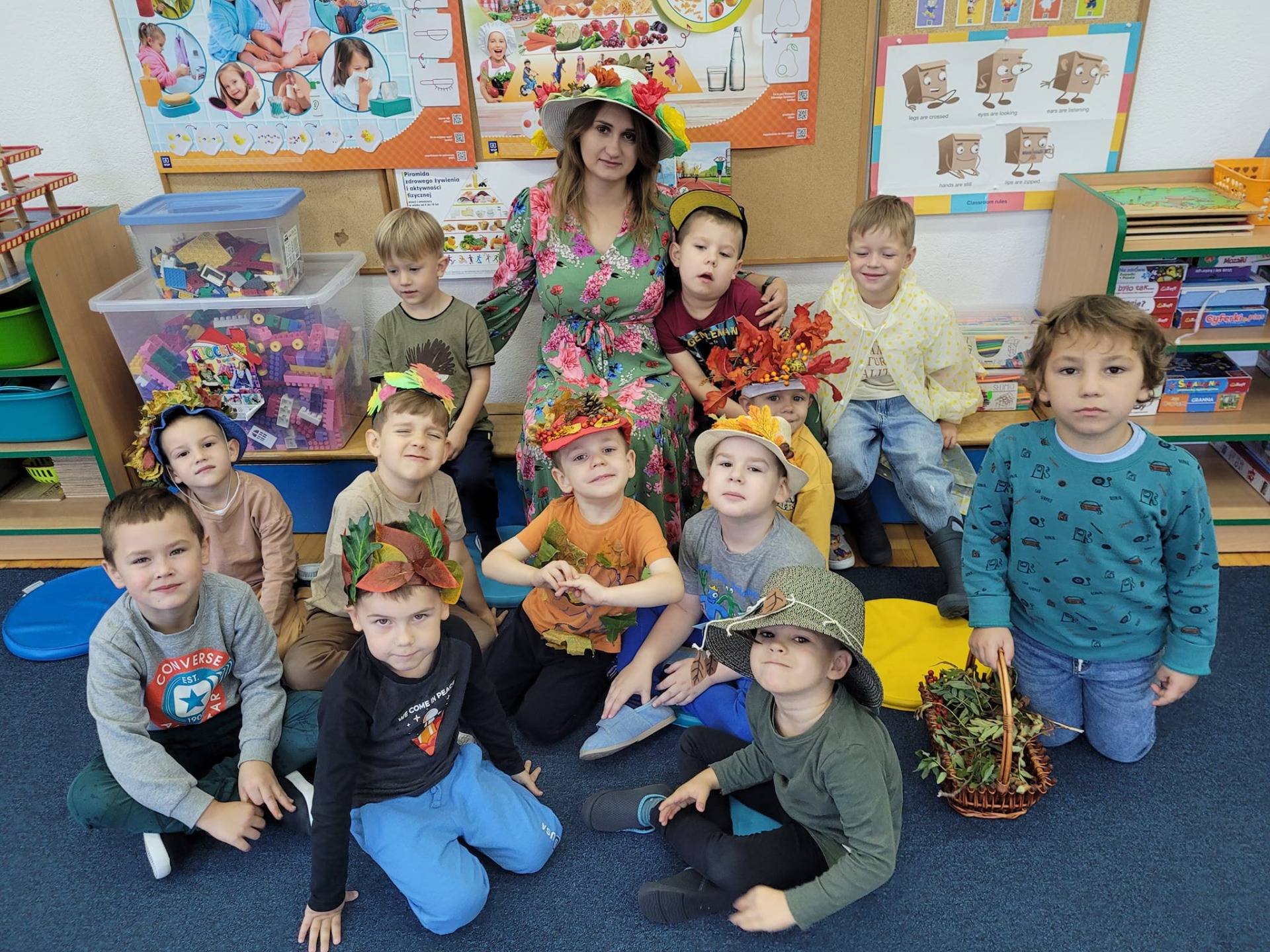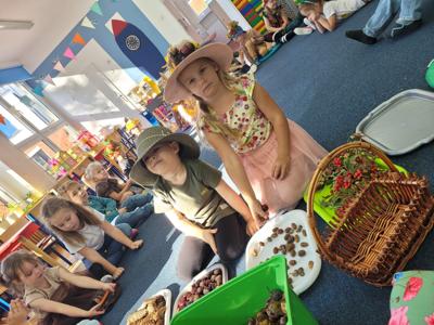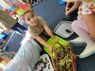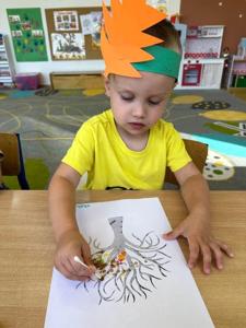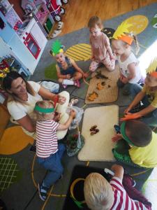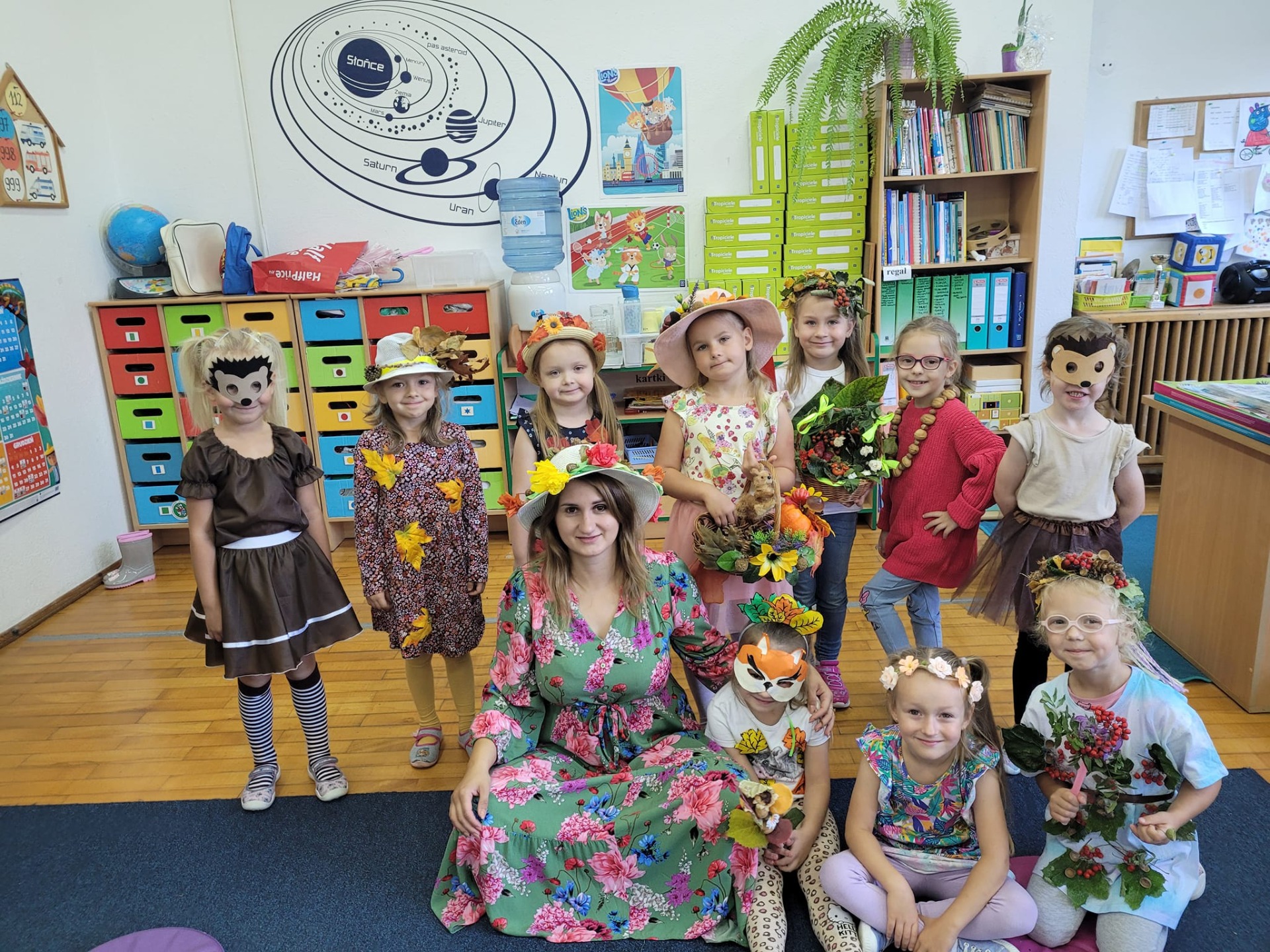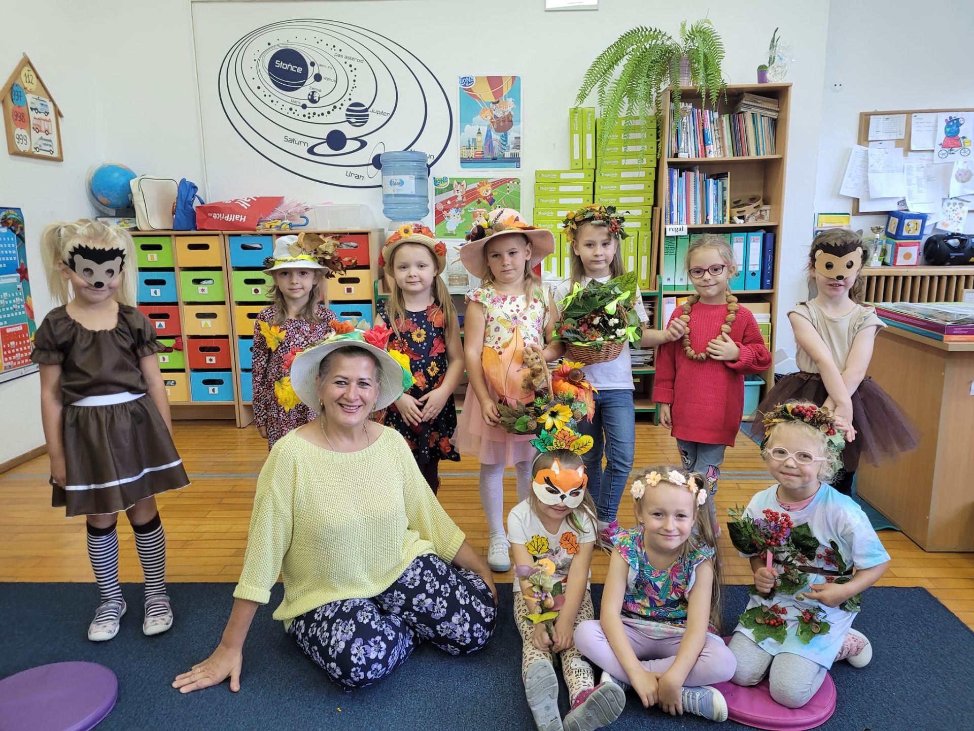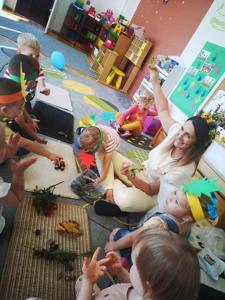 "Posypały się listeczki dookoła, to już jesień te listeczki z wiatrem woła.." 25 września zgodnie z tradycją witaliśmy nadchodzącą jesień. Dzieci przyszły do przedszkola w kolorowych strojach i przyniosły ze sobą dary jesienne. Podczas zajęć przedszkolaki utrwaliły wiadomości na temat zmieniających się warunków atmosferycznych. Podczas zabaw ruchowych integrowały się z rówieśnikami. Na koniec dnia dzieci wykonały jesienną prace plastyczną.