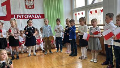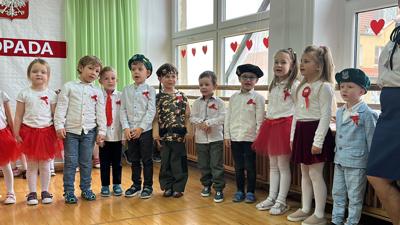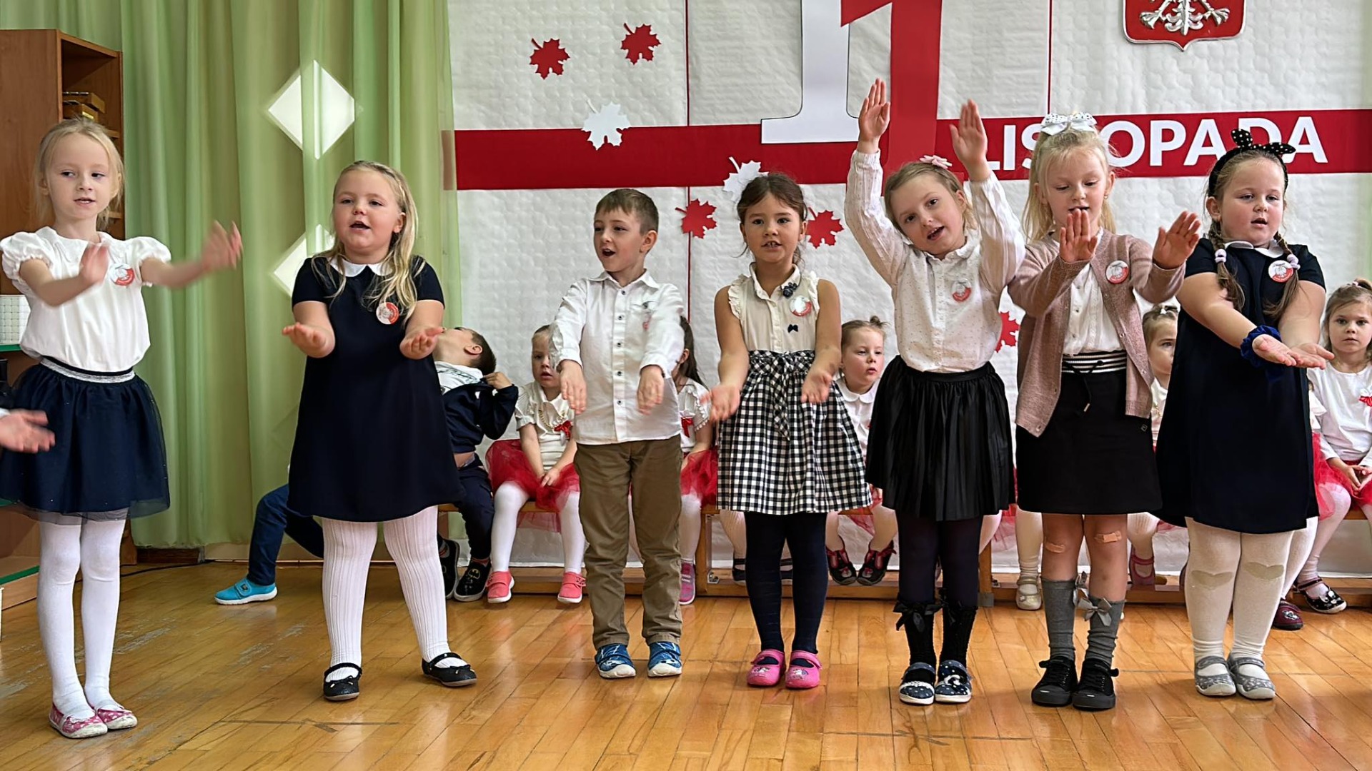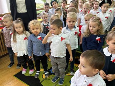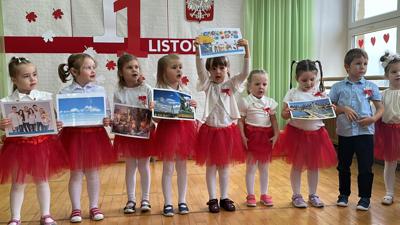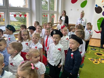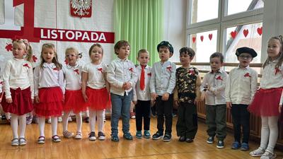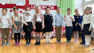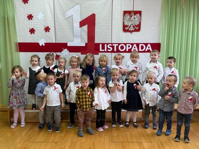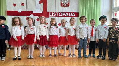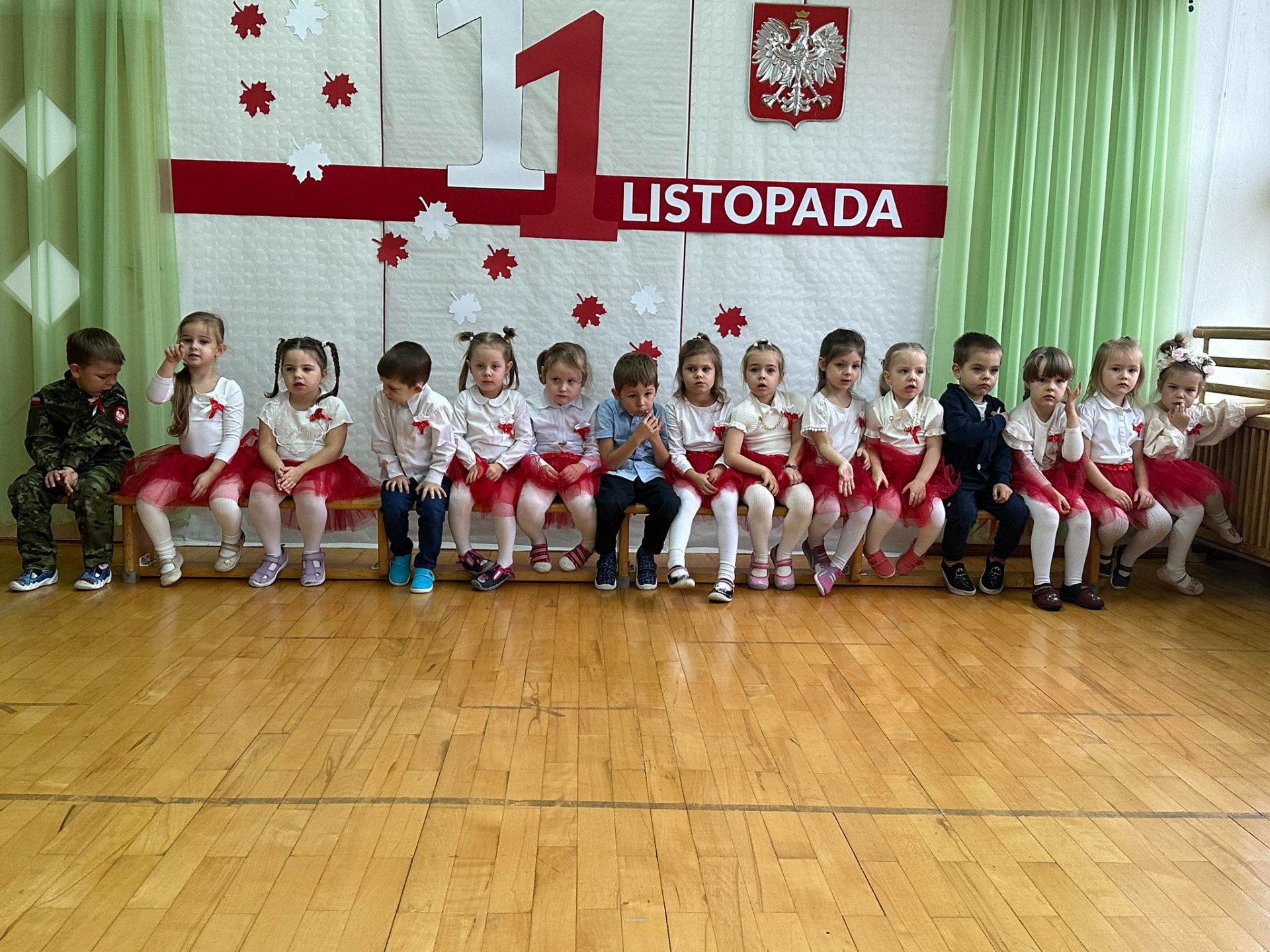 9 listopada dzieci wraz z pracownikami przedszkola uczestniczyły w uroczystości z okazji Narodowego Święta Niepodległości. Miała ona na celu kształtowanie postawy szacunku w stosunku do symboli narodowych oraz pielęgnowanie polskiej kultury i tradycji. Przedszkolaki ubrane na galowo zgromadziły się na sali rytmicznej, a dzieci z grupy Tygryski zaprezentowały część artystyczną. Z zaangażowanie recytowały wiersze i śpiewały piosenki o charakterze patriotycznym. Była to podniosła i piękna uroczystość.