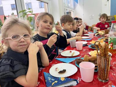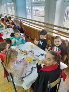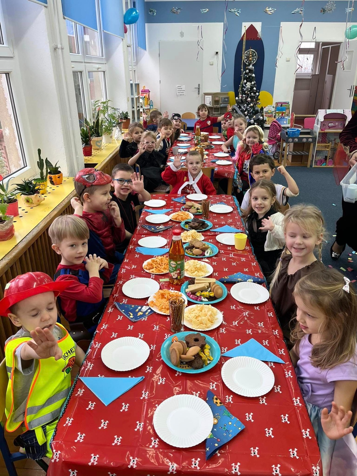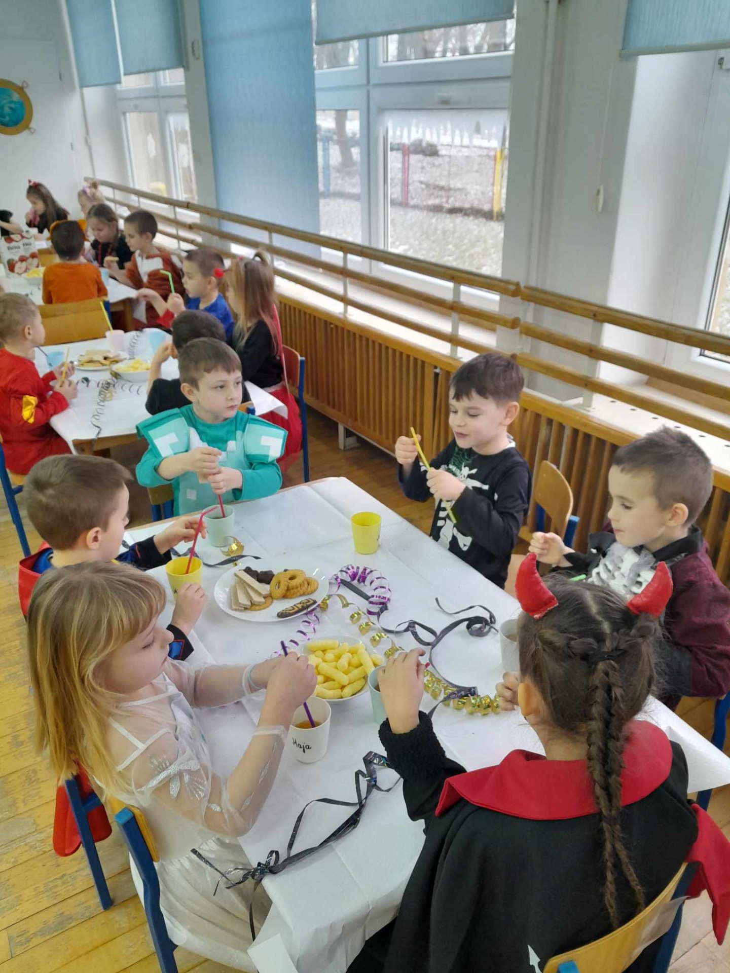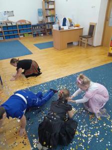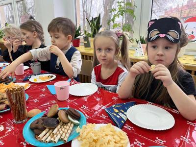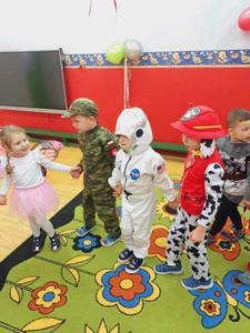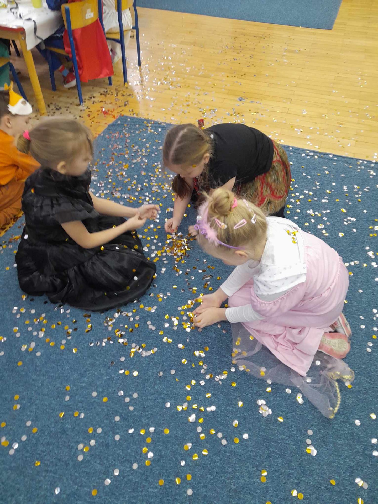 Nastał czas karnawału, zabawy i radości. Przedszkolaki podtrzymując coroczną tradycję przybyły do przedszkola w kolorowych strojach, balowych sukniach i bajecznych przebraniach. Wszyscy z ogromnym zachwytem zebrali się w dużej sali i rozpoczęli tańce. Śmiechu, szaleństwa i zabawy nie było końca. Na zakończenie balu każda grupa wykonała pamiątkowe zdjęcia, a dzieci rozeszły się do swoich sal na słodki poczęstunek.
