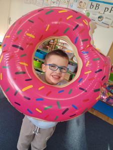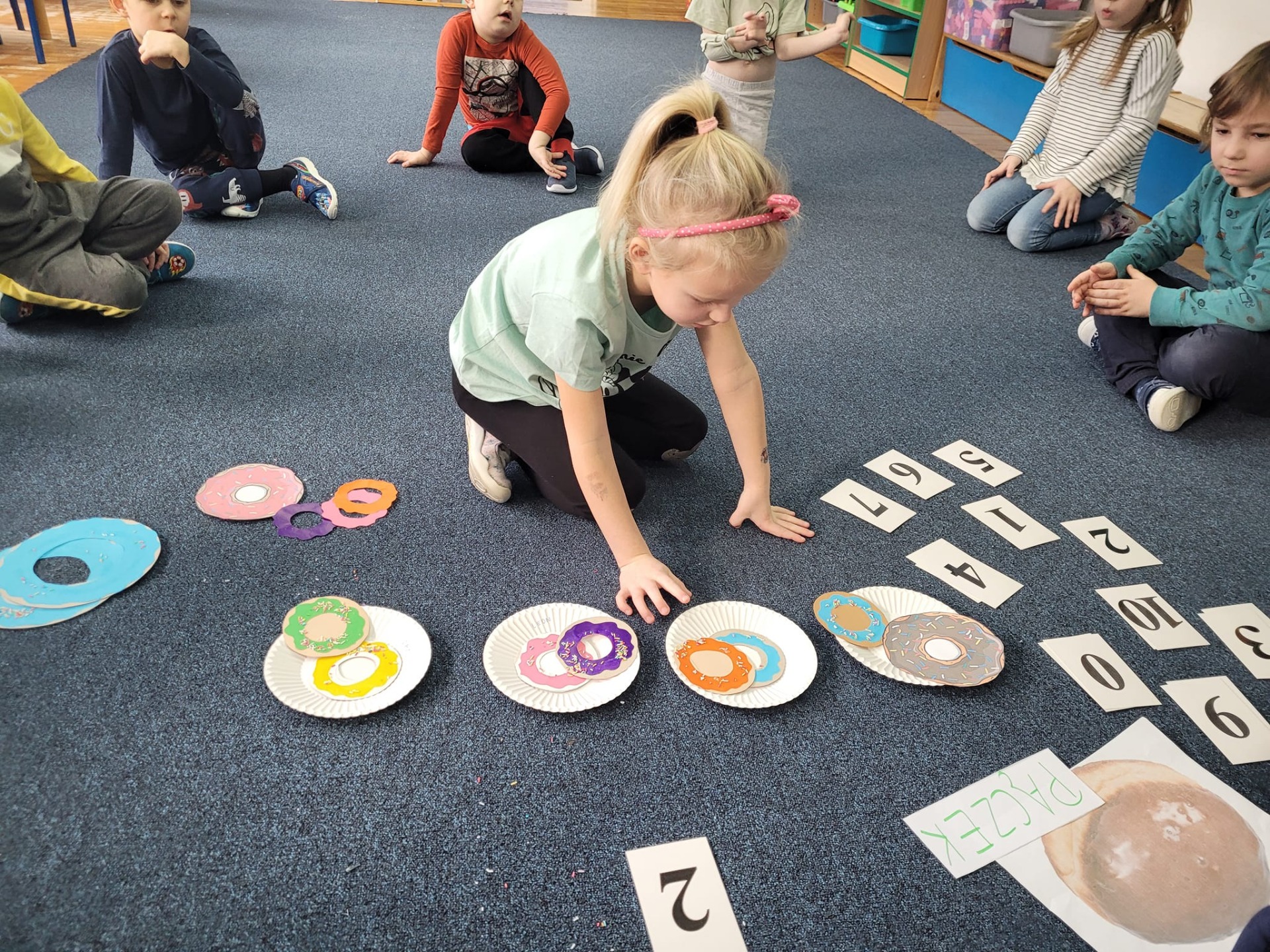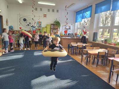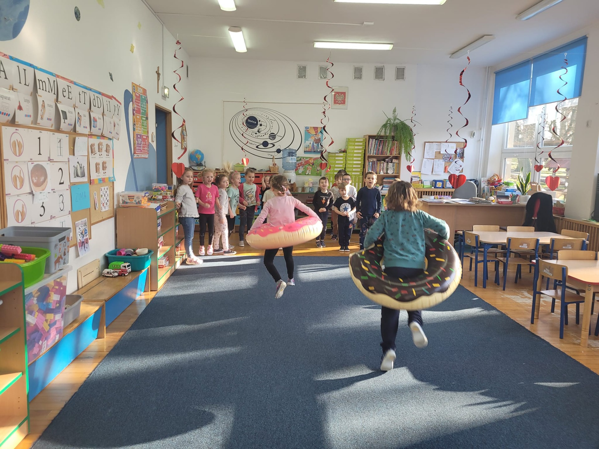 Przedszkolaki postanowiły włączyć się w tradycję i świętować tłusty czwartek w przedszkolu. Tego dnia nie zabrakło słodkich przekąsek, pączków oraz faworków. Dzieci uczestniczyły w zawodach sportowych. Z gazety wykonały smakowicie wyglądające pączki, które po zajęciach zabrały do domu. Na zakończenie dnia każda chętna osoba mogła zrobić sobie pamiątkowe zdjęcie z pączkiem. To był naprawdę słodki koniec karnawału.