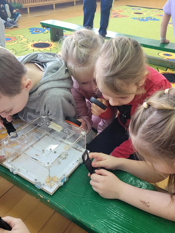 Czy wiecie, że mrówki istniały już w czasach, gdy po ziemi chodziły dinozaury? A obecnie istnieje ponad 12 tysięcy znanych gatunków mrówek? Aby dowiedzieć się więcej na temat życia tych małych stworzeń zaprosiliśmy do naszego przedszkola warsztaty mrówkarskie. Dzieci w formikariach mogły zobaczyć królową i wybrane gatunki mrówek. Na makiecie oglądaliśmy przekrój mrowiska i poznaliśmy jego budowę. Dzieci były zachwycone i zainteresowaniem słuchały ciekawostek na temat życia mrówek.