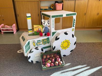 Grupa Tygrysków w tym roku realizuje program „Maluchy zmieniają się w zuchu” z Kicią Kocią. Celem projektu jest propagowanie czytelnictwa wśród najmłodszych przedszkolaków, utożsamianie się z bohaterami książkowymi oraz rozwijanie potencjału poznawczego dzieci. Projekt obejmuje 8 bloków tematycznych. W tym tygodniu Tygryski realizowały temat „Kicia Kocia na traktorze”.