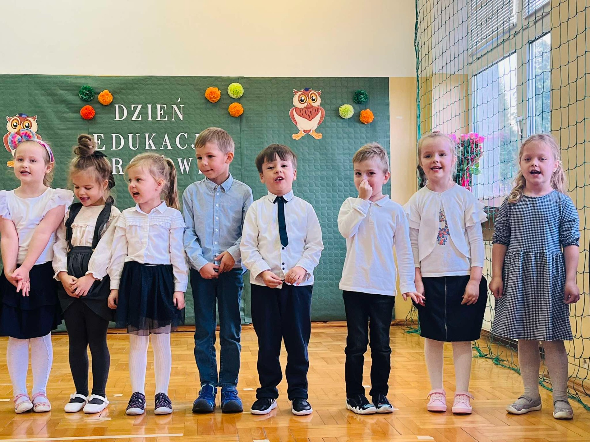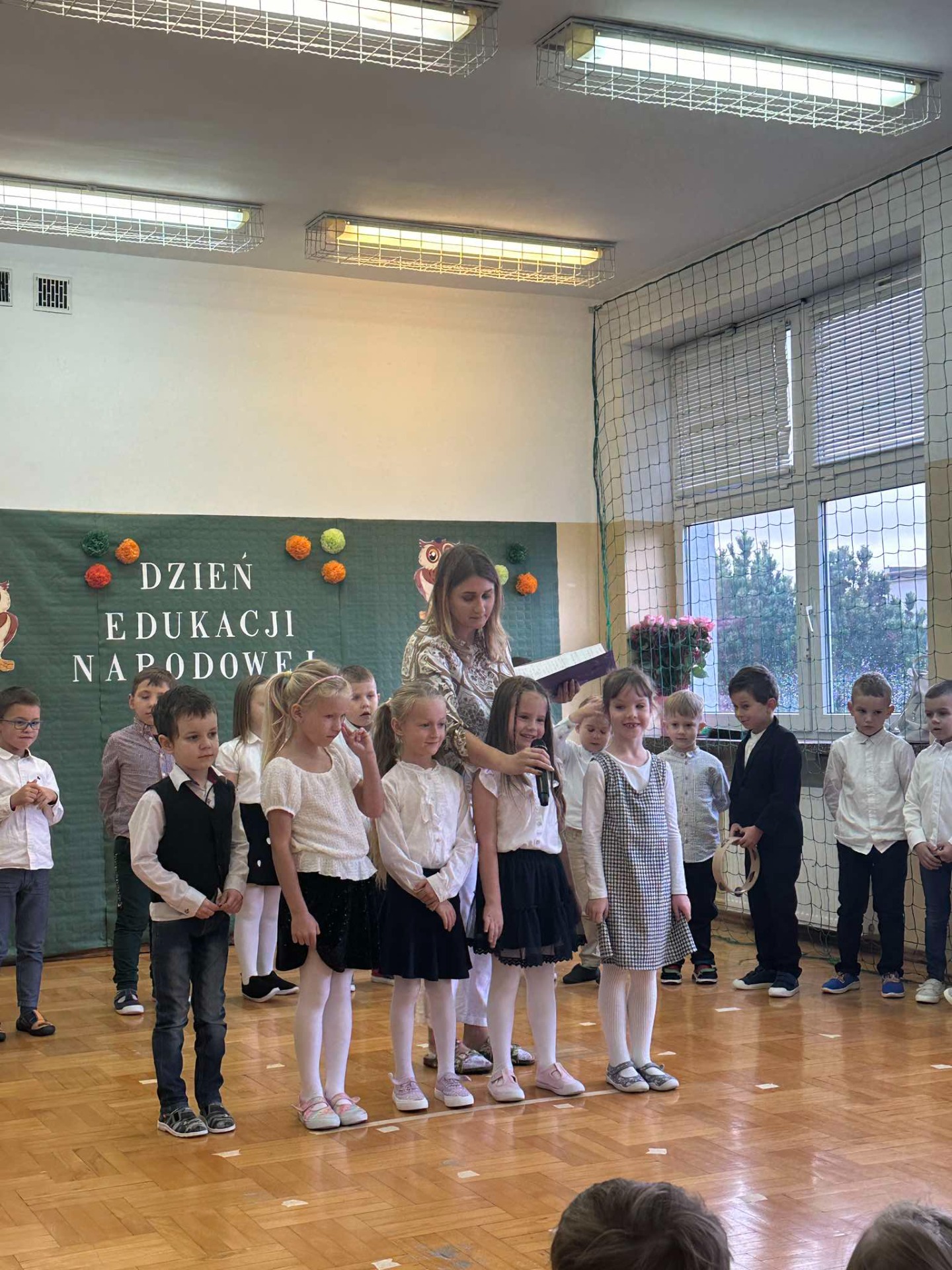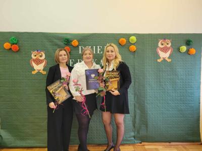 14 października całe nasze przedszkole świętowało Dzień Edukacji Narodowej. Przedszkolaki z grupy Kosmoludki przygotowały uroczysty apel za pomocą, którego chciały okazać swój szacunek i uznanie Gronu Pedagogicznemu. Wdzięczność za naukę i opiekę okazały również dzieci z pozostałych grup śpiewając dla swych Pań piosenki. Na zakończenie uroczystości głos zabrała Pani Dyrektor Iwona Dunal, która podziękowała swym pracownikom za codzienne zaangażowanie i serce okazywane najmłodszym. W tym roku wyróżnienie za osiągnięcia w pracy dydaktycznej otrzymały Panie: mgr Katarzyna Wolańska - wychowawca grupy sześciolatków, mgr Sylwia Kamińska - nauczyciel dochodzący w grupie trzylatków oraz mgr Edyta Sobotkiewicz - logopeda. Wyrazy uznania złożone zostały także na ręce wszystkich pracowników obsługi.