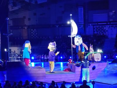 Rewia na lodzie pt.” Niezwykłe Przygody Sindbada Żeglarza” to widowisko, w którym wzięło udział 18 zawodowych łyżwiarzy z całej Polski. Na uwagę zasługuje znakomita oprawa muzyczna, choreografia pełna popisów indywidualnych zawierających trudne elementy jazdy figurowej na lodzie. W spektaklu bierze udział grupa artystów cyrkowych, którzy wzbogacą rewię takimi efektami jak: pokaz ogniowy, taniec na podwieszonej szarfie na wysokości 8 m oraz lodowe show. Całość dopełnia ruchoma scenografia, statek piracki, 10- cio metrowy ptak Rok, wyspa z palmami, bogato zdobiony zamek i wspaniałe kostiumy.