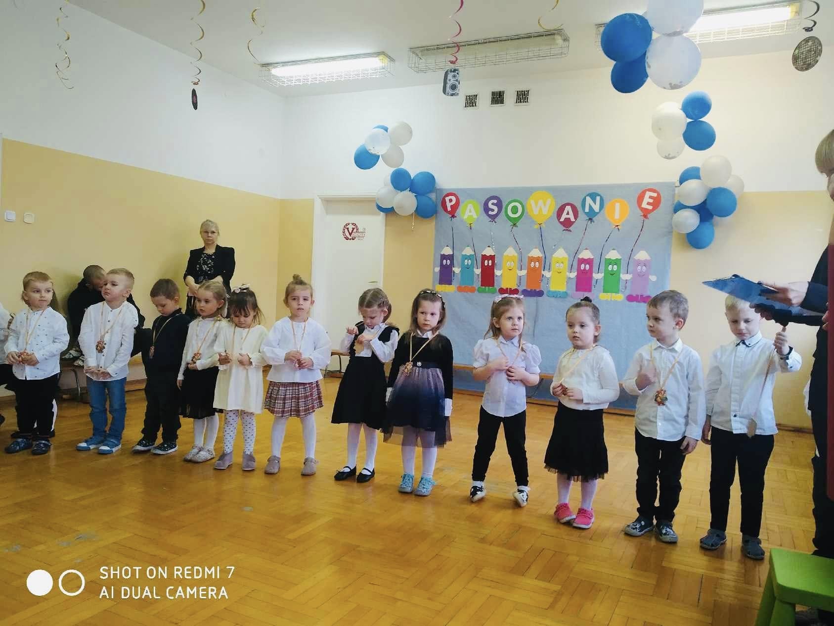 Pasowanie na Przedszkolaka w grupie „Misie” było wyjątkowym i pełnym radości wydarzeniem! Dzieci pięknie zaprezentowały się, recytując wierszyki oraz śpiewając piosenki, pokazując w ten sposób jak bardzo są już gotowe do przedszkolnego życia. 🐻 Serdecznie dziękujemy wszystkim rodzicom za zaangażowanie i pomoc w organizacji tego dnia, który na długo pozostanie w naszej pamięci!