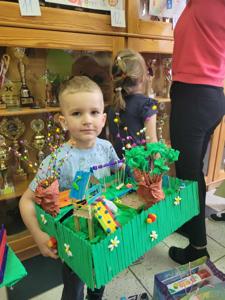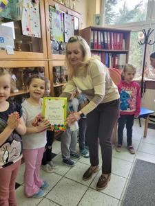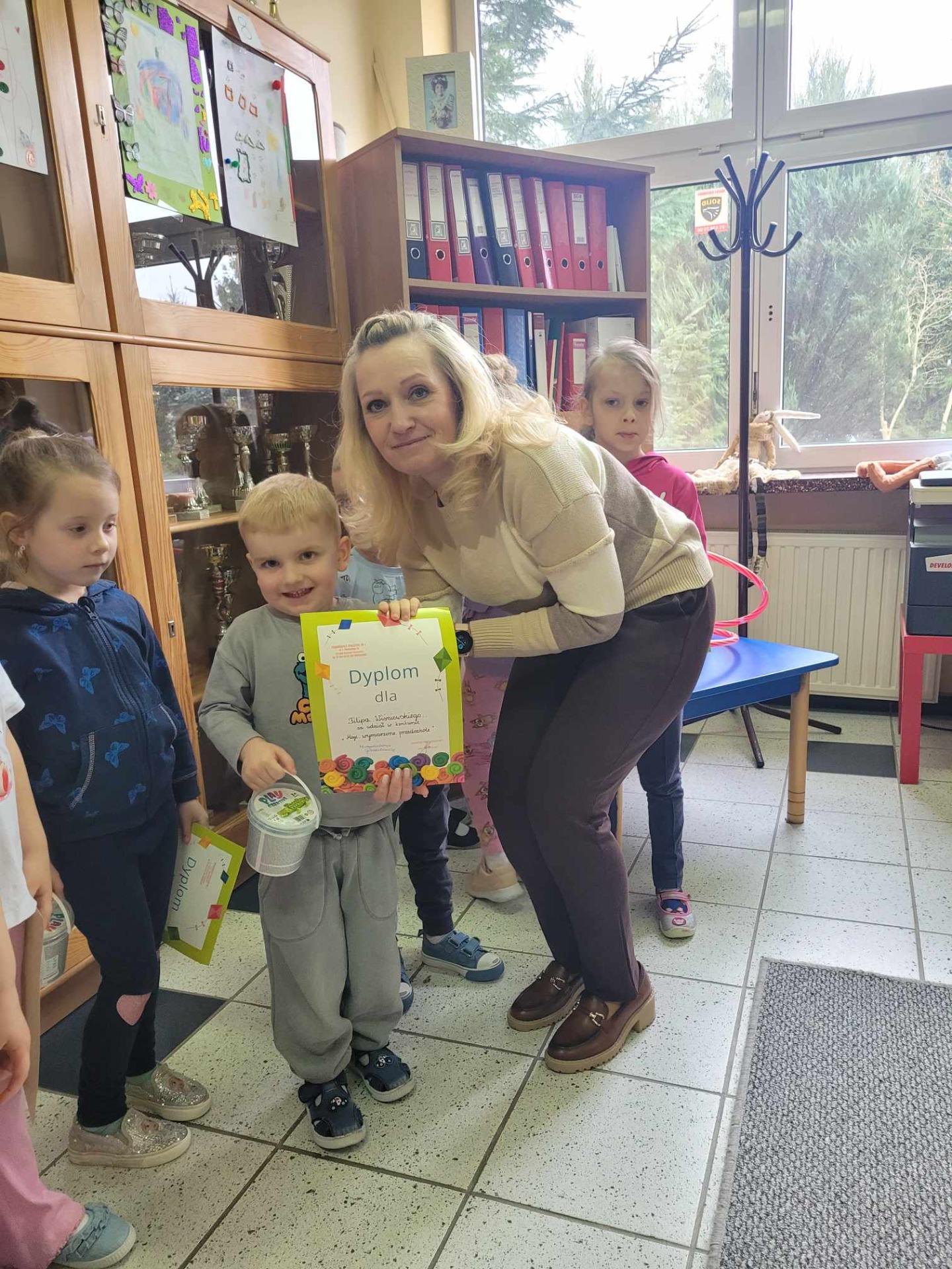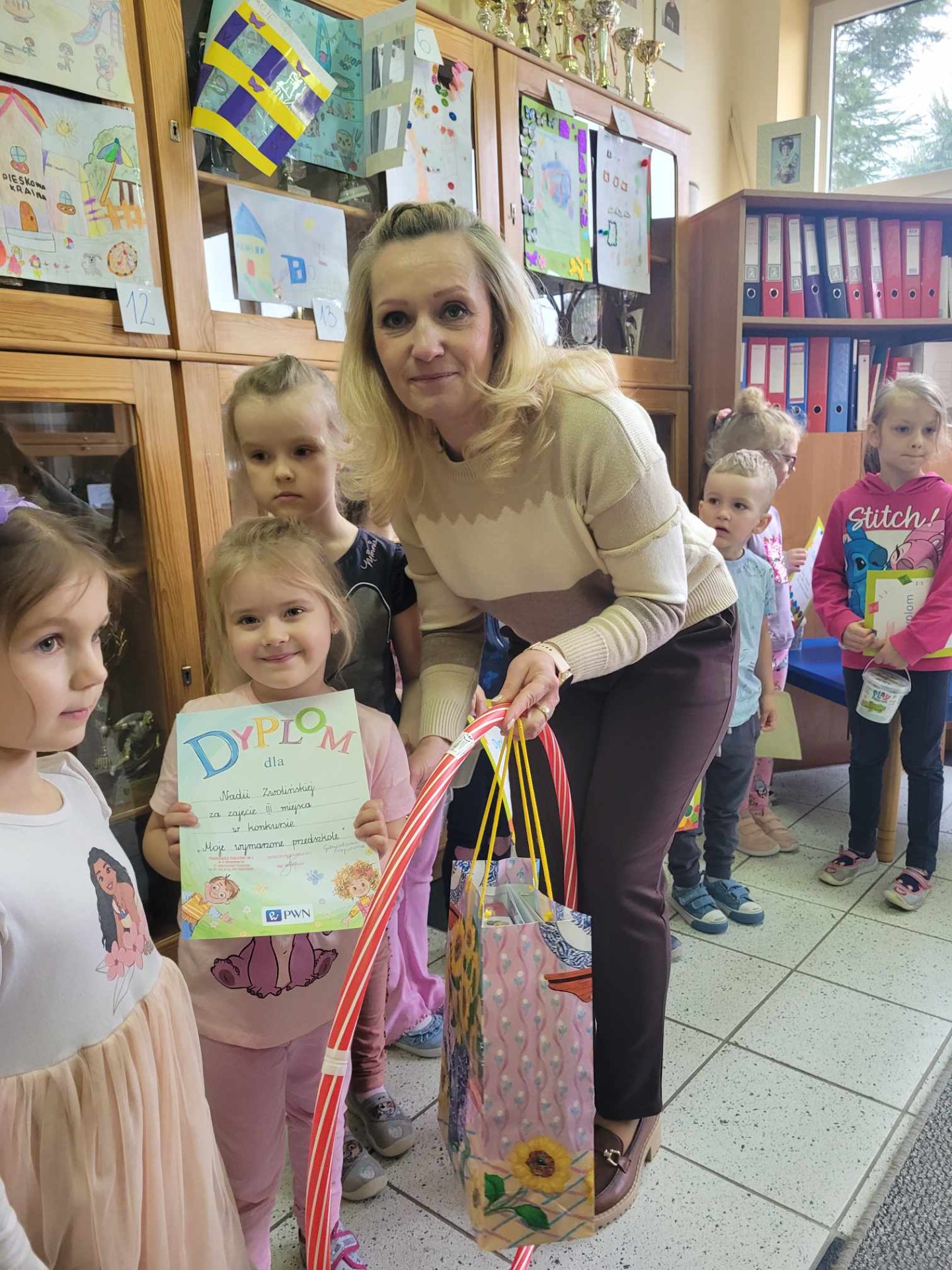 Pani mgr Magdalena Gierżatowicz zorganizowała w naszej placówce konkurs pt." Moje wymarzone przedszkole". Chętne dzieci miały za zadanie wraz z rodzicami wykonać projekt wymarzonego przedszkola według własnego pomysłu. Różnorodność prac była duża. Uczestnicy wykonywali prace plastyczne na formacie A3, a także prace przestrzenne. W konkursie głosowali rodzice naszych przedszkolaków. Po zliczeniu głosów wyłoniono trzy prace z największą ilością punktów. Wyniki prezentują się następująco: 1 miejsce Antoni Pasturczak( grupa Misie) 2 miejsce Natalia Ciszczyk ( grupa Marynarze) 3 miejsce Nadia Zwolińska ( grupa Tygryski). Serdecznie dziękujemy za udział i doceniamy kreatywność wszystkich uczestników.