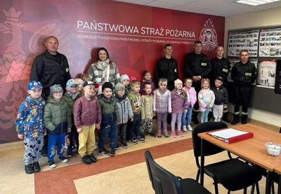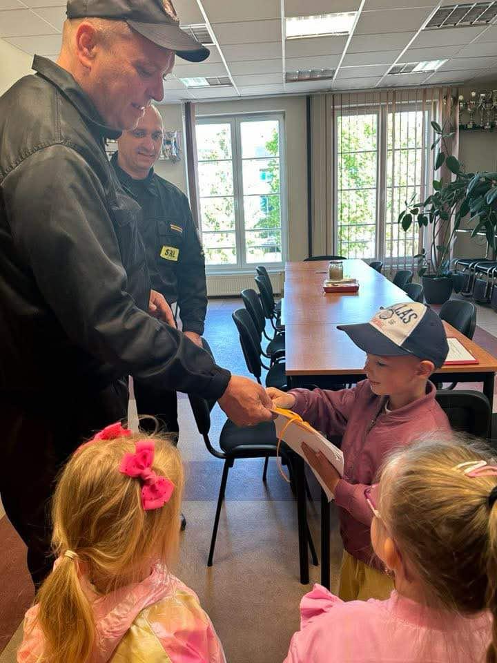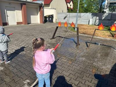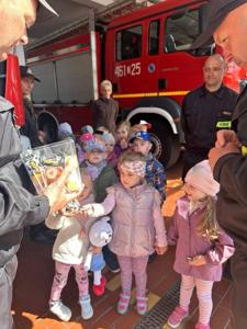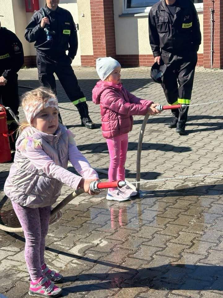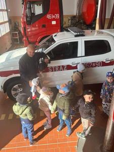 Przedszkolaki z grupy Tygryski wybrały się do siedziby straży pożarnej w Kamieniu Pomorskim. Dzieci dowiedziały się jak wygląda praca strażaka oraz czemu służy. Maluchy zobaczyły jak wygląda wóz strażacki i w jaki sprzęt jest zaopatrzony, mogły także przymierzyć hełm strażacki i dowiedzieć się o zasadach bezpieczeństwa. Każda chętna osoba miał okazję zająć miejsce na fotelu w strażackim wozie. Na zakończenie na przedszkolaki czekała największa atrakcja, polewanie wodą, które przyniosło dzieciom wiele radości. Wizyta ta miała na celu uświadomienie dzieciom znaczenia pracy strażaków oraz kształtowanie właściwych zachowań w sytuacjach zagrożenia.