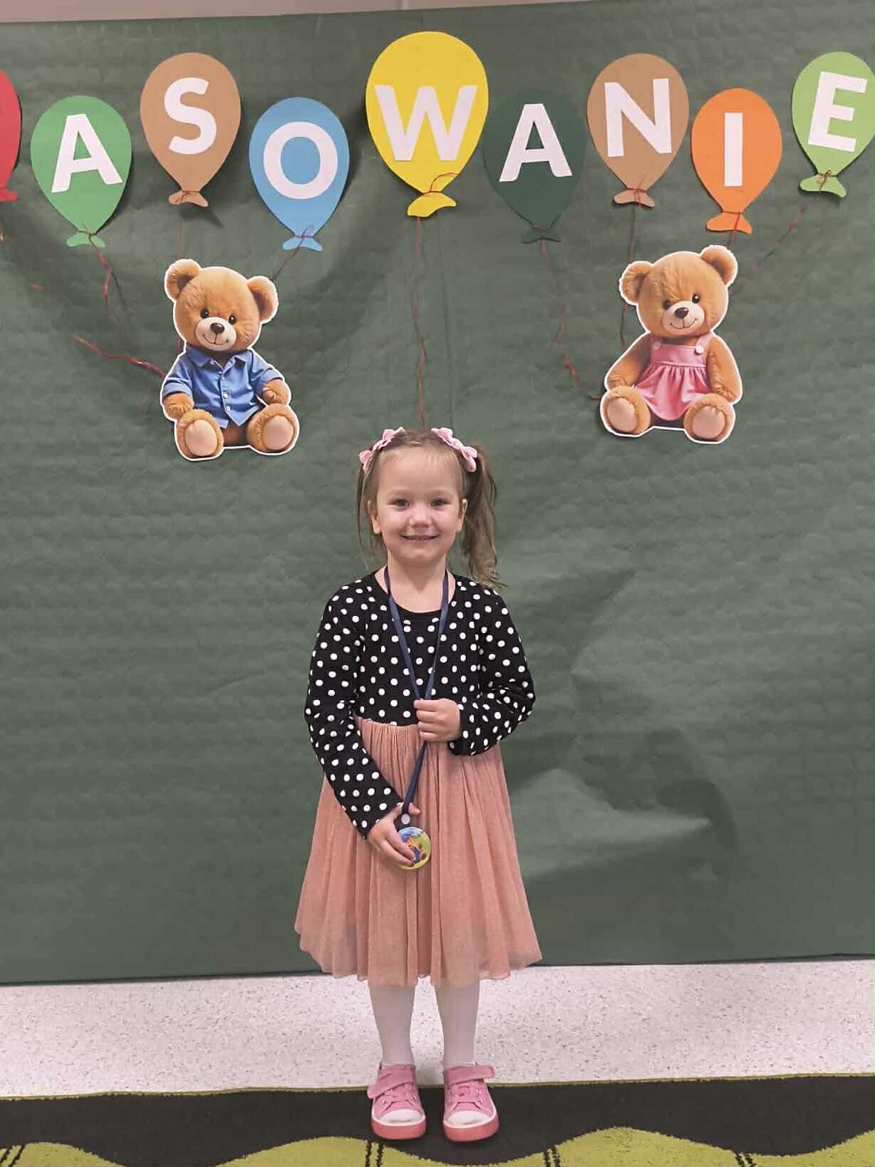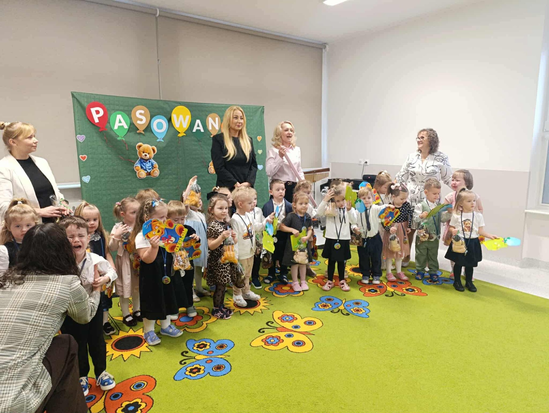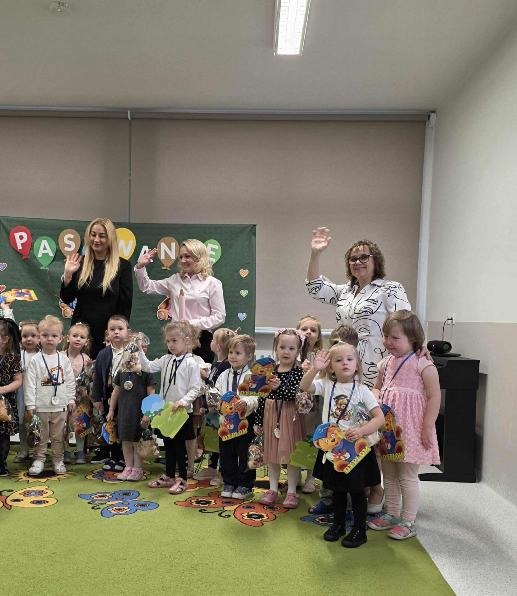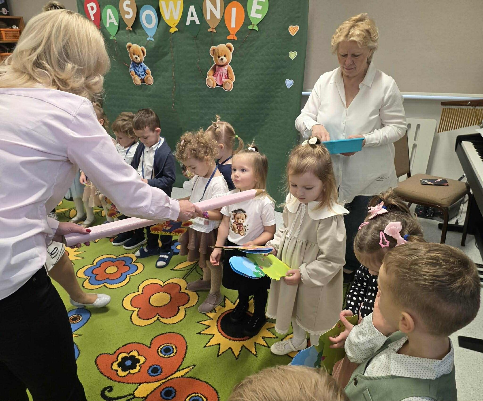 My maluchy przyrzekamy być od dziś przedszkolakami. Nie grymasić i nie szlochać, zawsze swoje Panie kochać ! 20 listopada w grupie Misie odbyło się pasowanie na przedszkolaka. Uroczystość ta symbolizuje oficjalne przyjęcie dziecka do grona przedszkolaków. Podczas uroczystości dzieci zaprezentowały swoje umiejętności przed rodzicami i nauczycielami. Następnie Pani Dyrektor dotykając każdego w ramię wielką kredką, oficjalnie nadawała dzieciom tytuł przedszkolaka. Na zakończenie dzieci otrzymały misiowe medale, dyplomy i maskotki. Po części oficjalnej goście udali się do sali na owocowy poczęstunek.