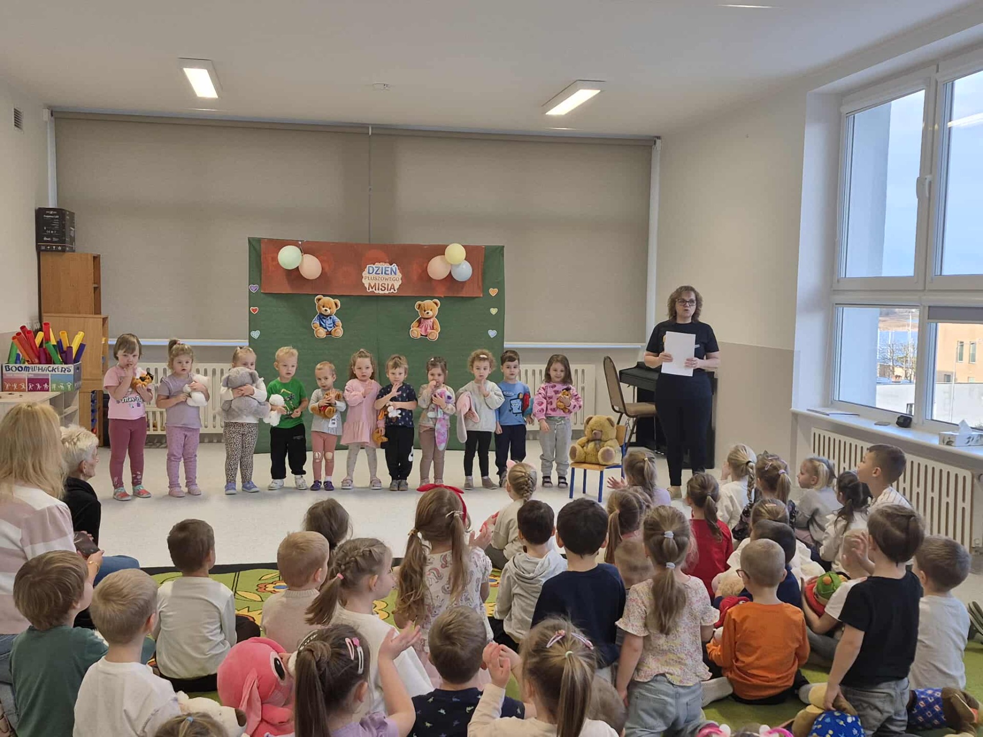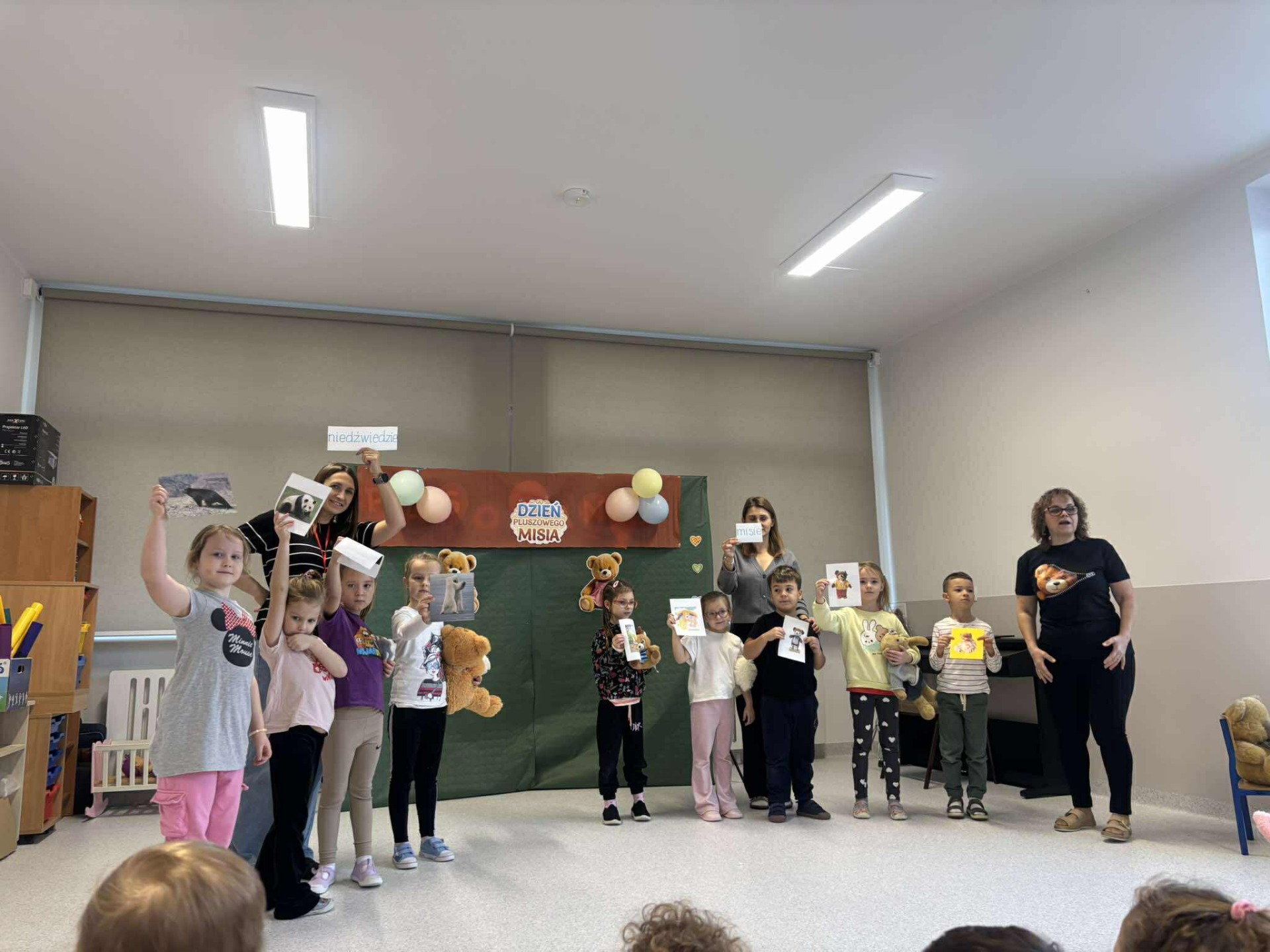 26 listopada całe nasze przedszkole świętowało Dzień Misia. Dzieci od rana maszerowały z ukochanymi pluszakami do przedszkola. Najmłodsze dzieci powitały wszystkich wierszykiem o misiu. Następnie przedszkolaki rozwiązywały misiowe zagadki i rebusy. Nie zabrakło również tradycyjnej zabawy Stary niedźwiedź mocno śpi, która przyniosła dzieciom wiele śmiechu i radości. Na zakończenie wykonane zostały pamiątkowe zdjęcia z misiami.