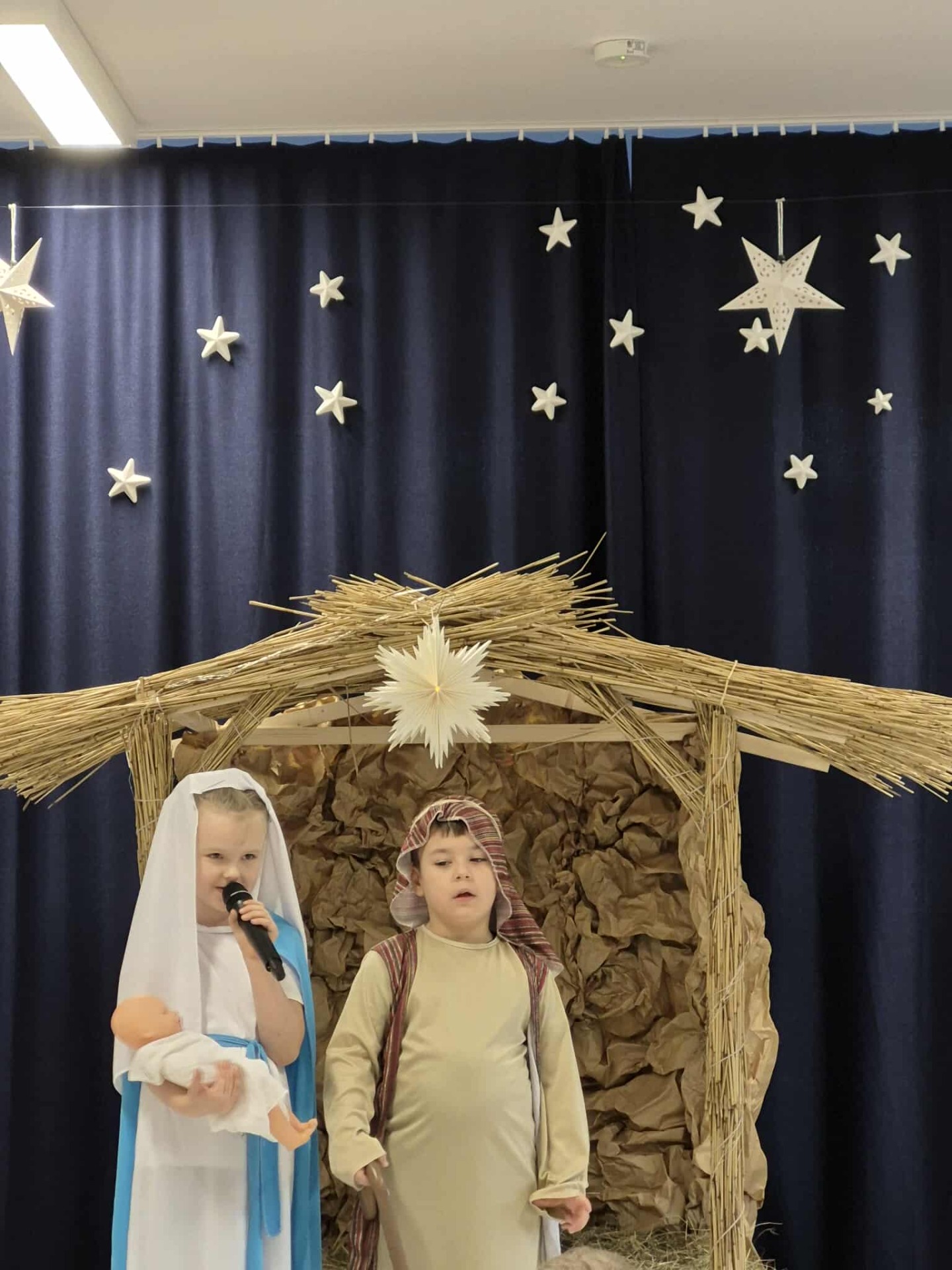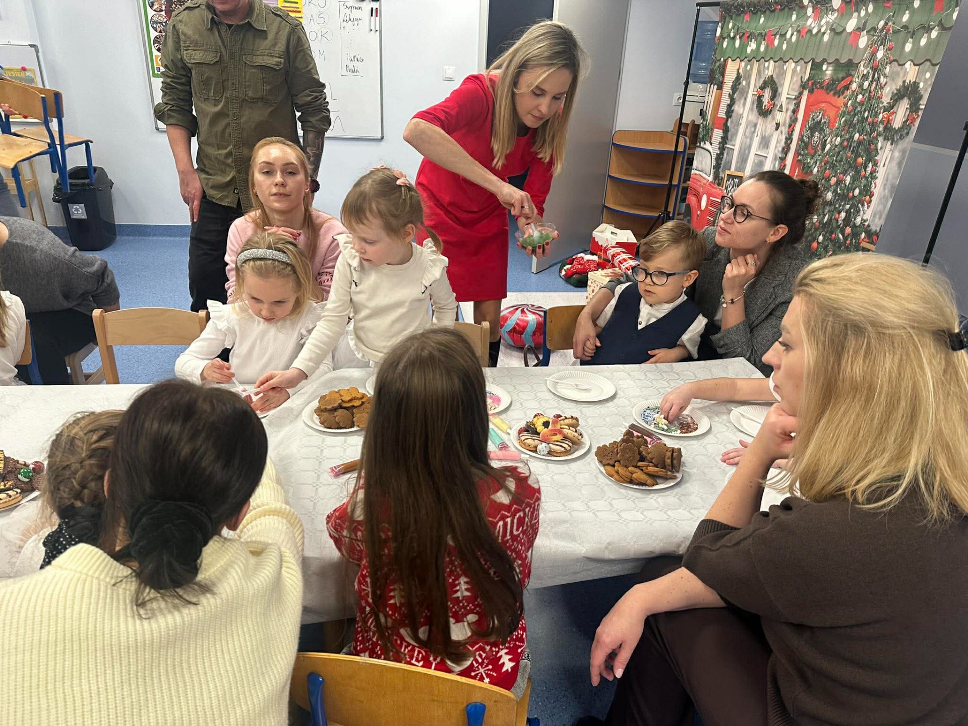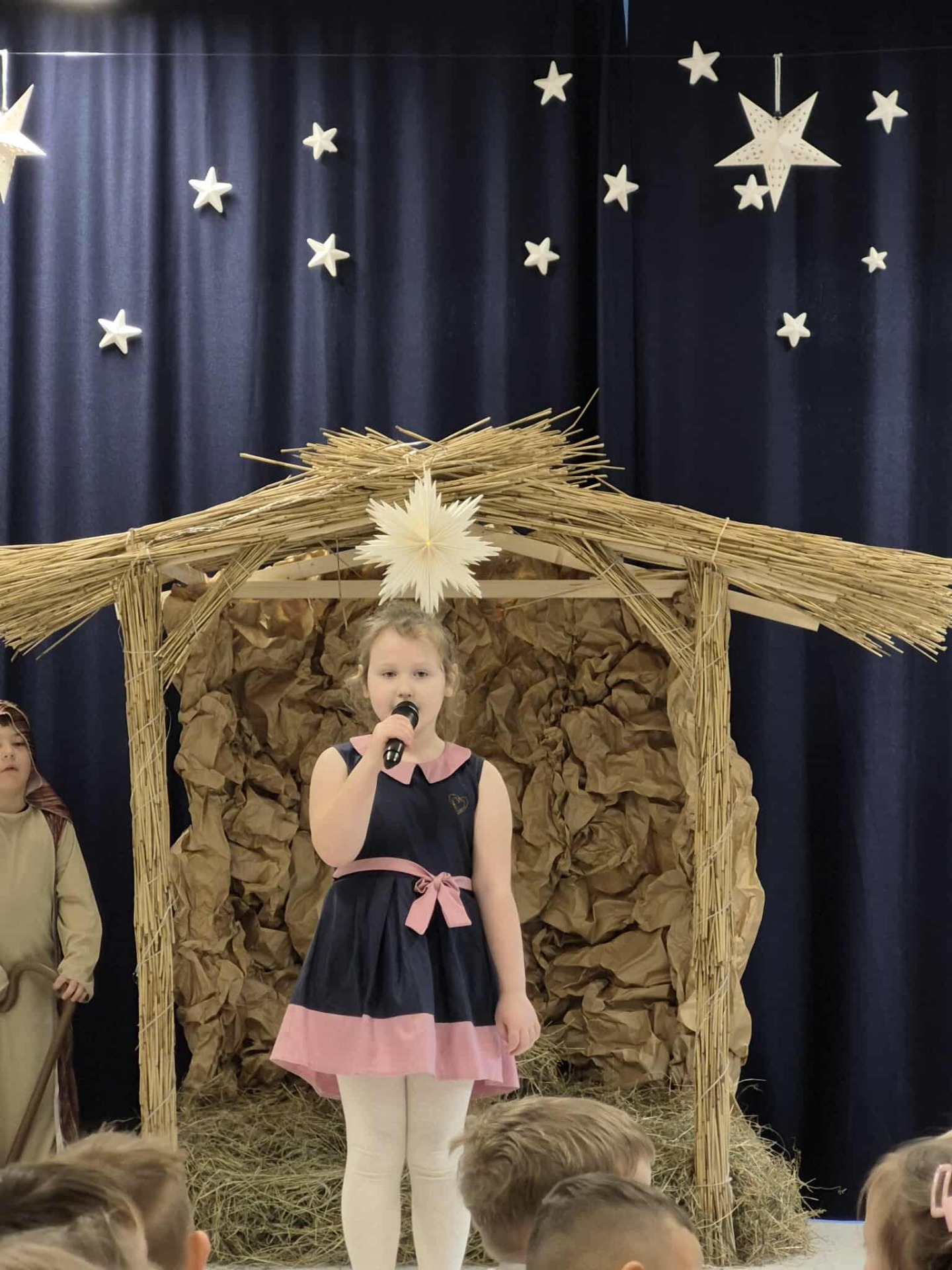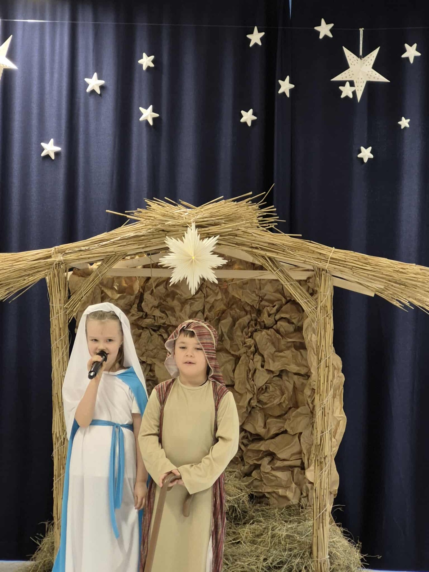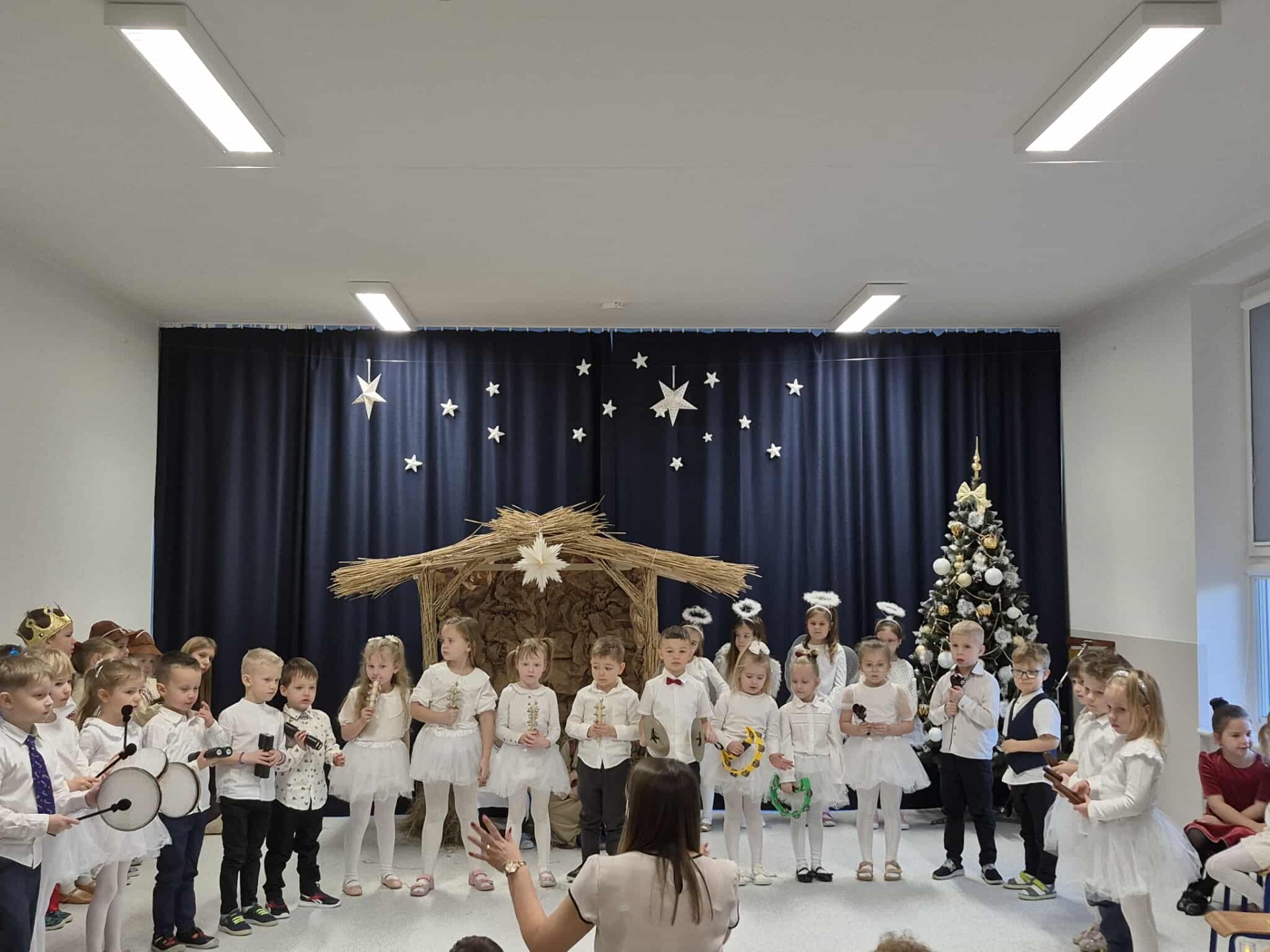 Tradycją naszego przedszkola jest przygotowanie i wystawienie w okresie przedświątecznym Jasełek. Przedstawienie jasełkowe w wykonaniu przedszkolaków wprowadziły całą społeczność przedszkolną w świąteczny czas. Świąteczny nastrój podkreślały odświętne stroje dzieci i przepiękna dekoracja sceny. Mali aktorzy z wielkim przejęciem wygłaszali swoje role i radośnie śpiewali kolędy i pastorałki. Po występach dzieci wraz z rodzicami udały się do swoich sal, aby wspólnie świętować. Przedszkolaki ozdabiały świątecznie pierniczki i wzięły udział w sesji zdjęciowej. To był bardzo rodzinny czas, spotkanie, które bardzo zbliżyło nas do siebie.