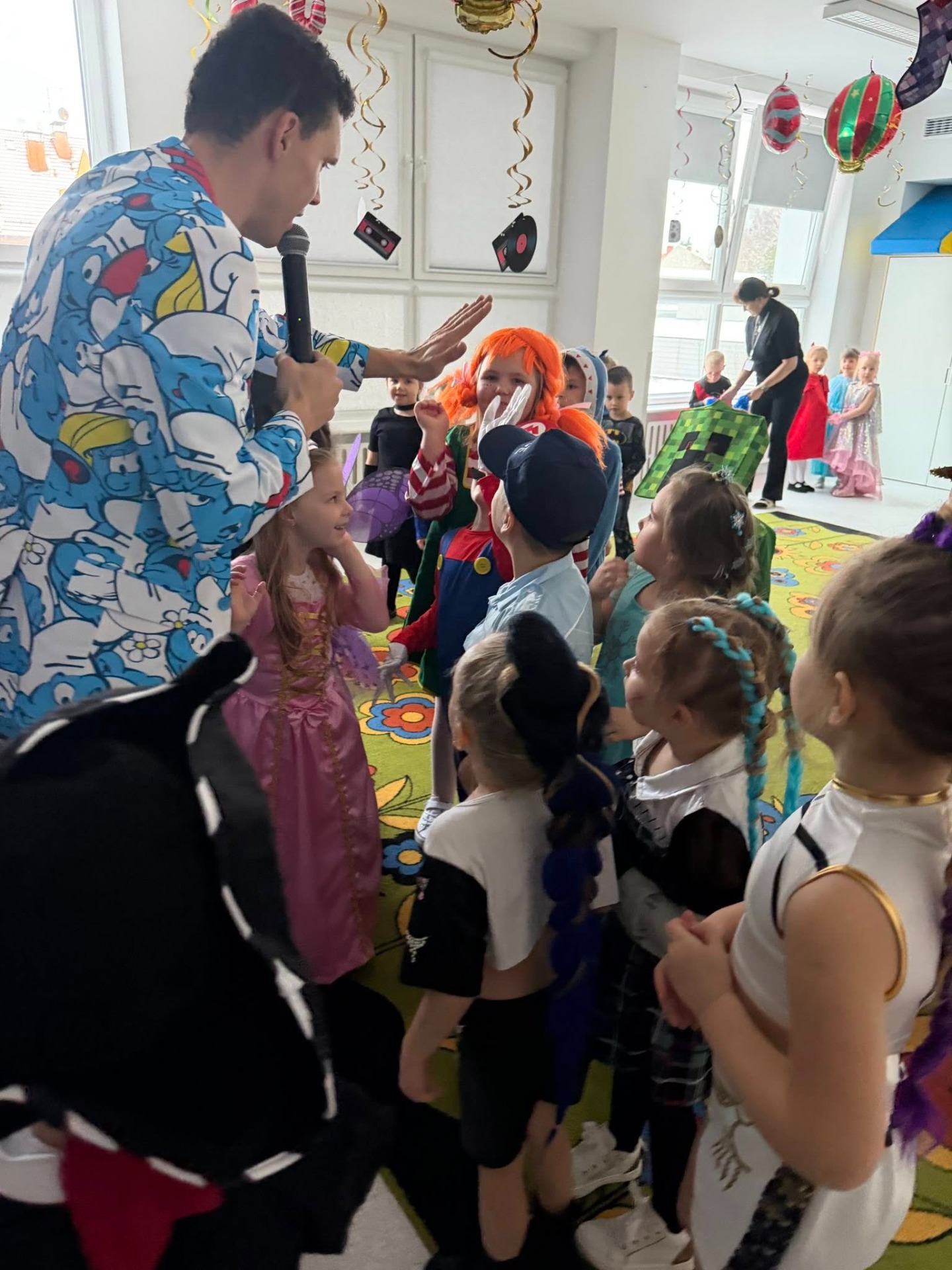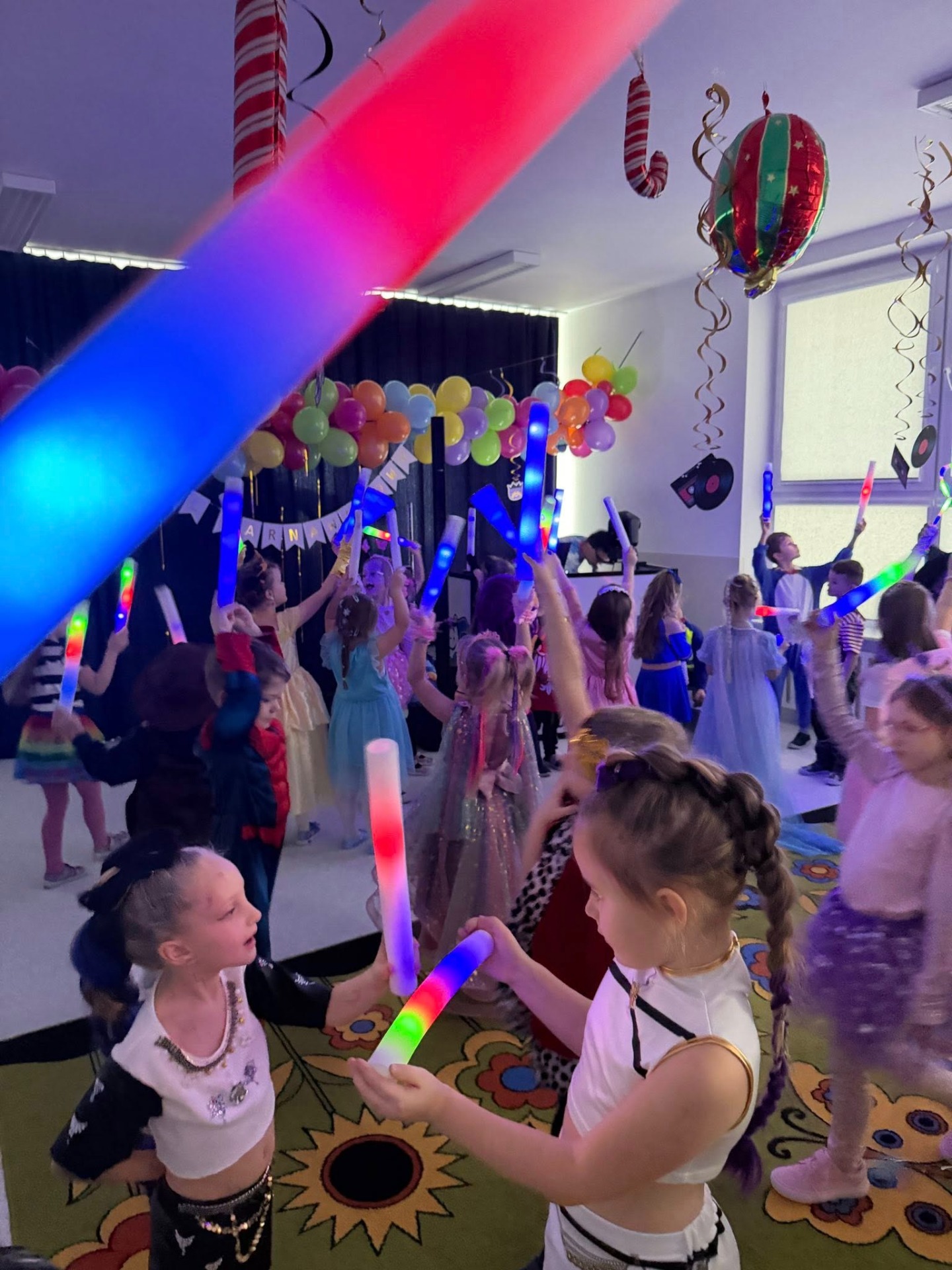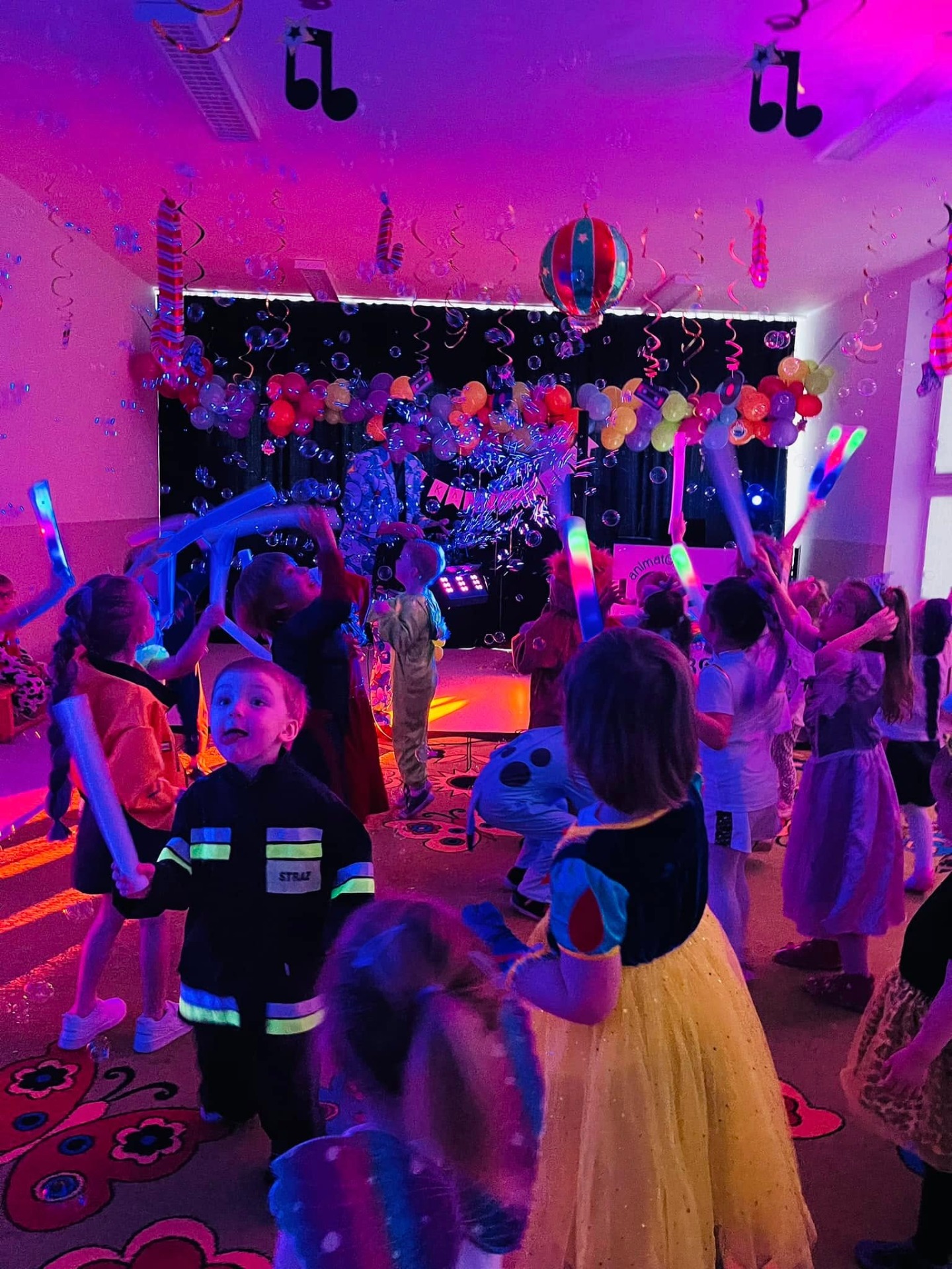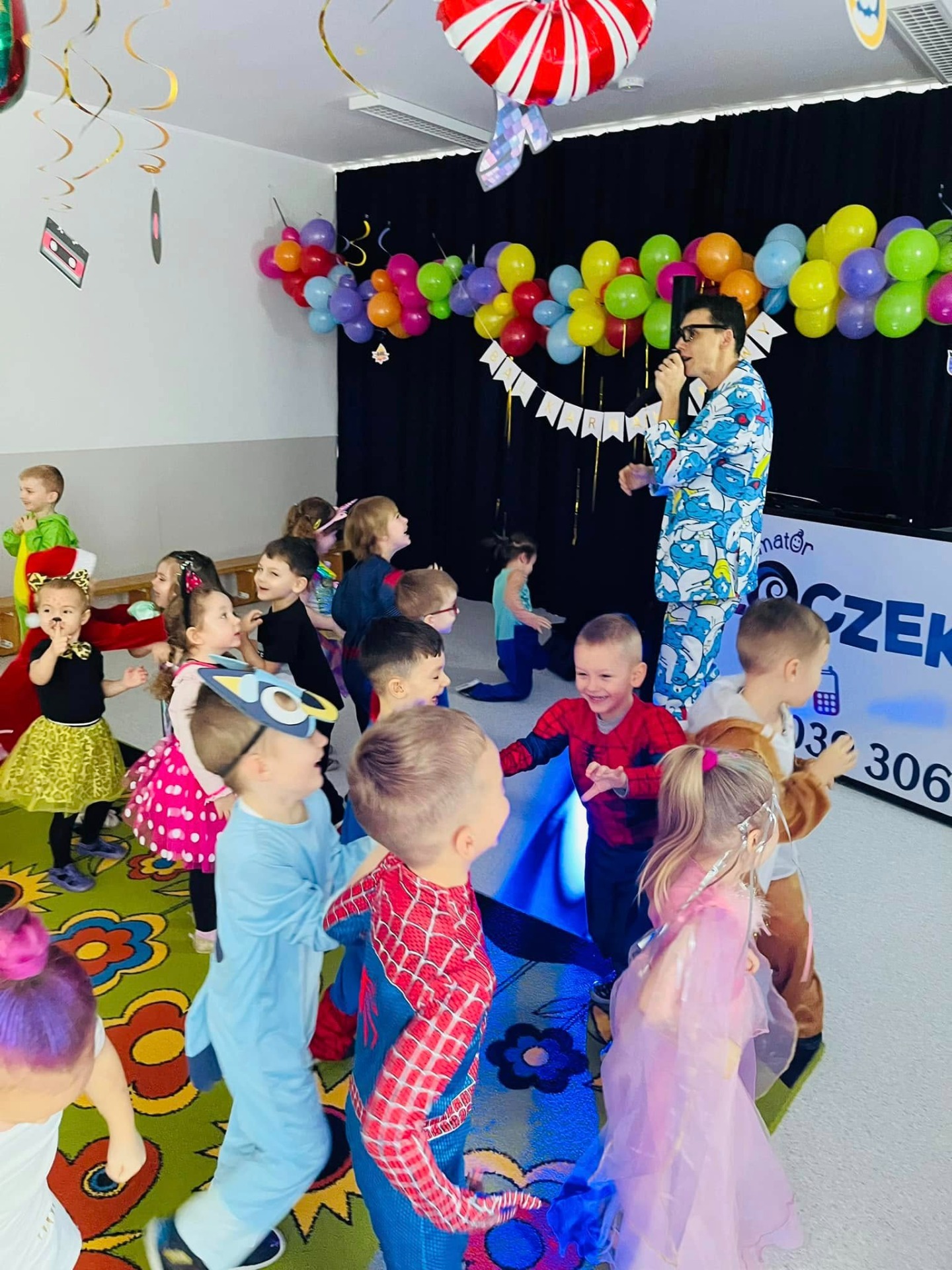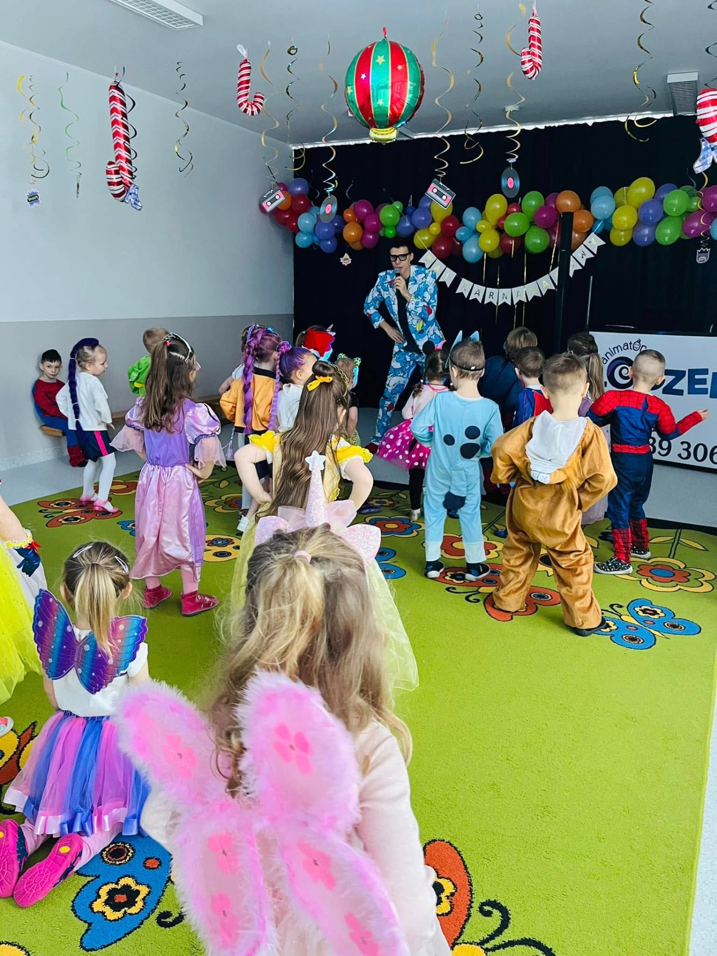 Karnawał to czas zabawy i radości. W naszym przedszkolu także postanowiliśmy wykorzystać ten wyjątkowy okres w roku i zorganizowaliśmy taneczną zabawę pod kierownictwem animatora Loczka. Dzieci przebrały się w stroje charakteryzujące ich ulubione postaci z bajek. Przystrojona sala gimnastyczna zachęcała do szalonej zabawy. Dzieci z wielką radością uczestniczyły w tańcach i zabawach ruchowych. Na zakończenie odbył się pokaz mody podczas, którego przedszkolaki z dumą prezentowały swoje kostiumy.